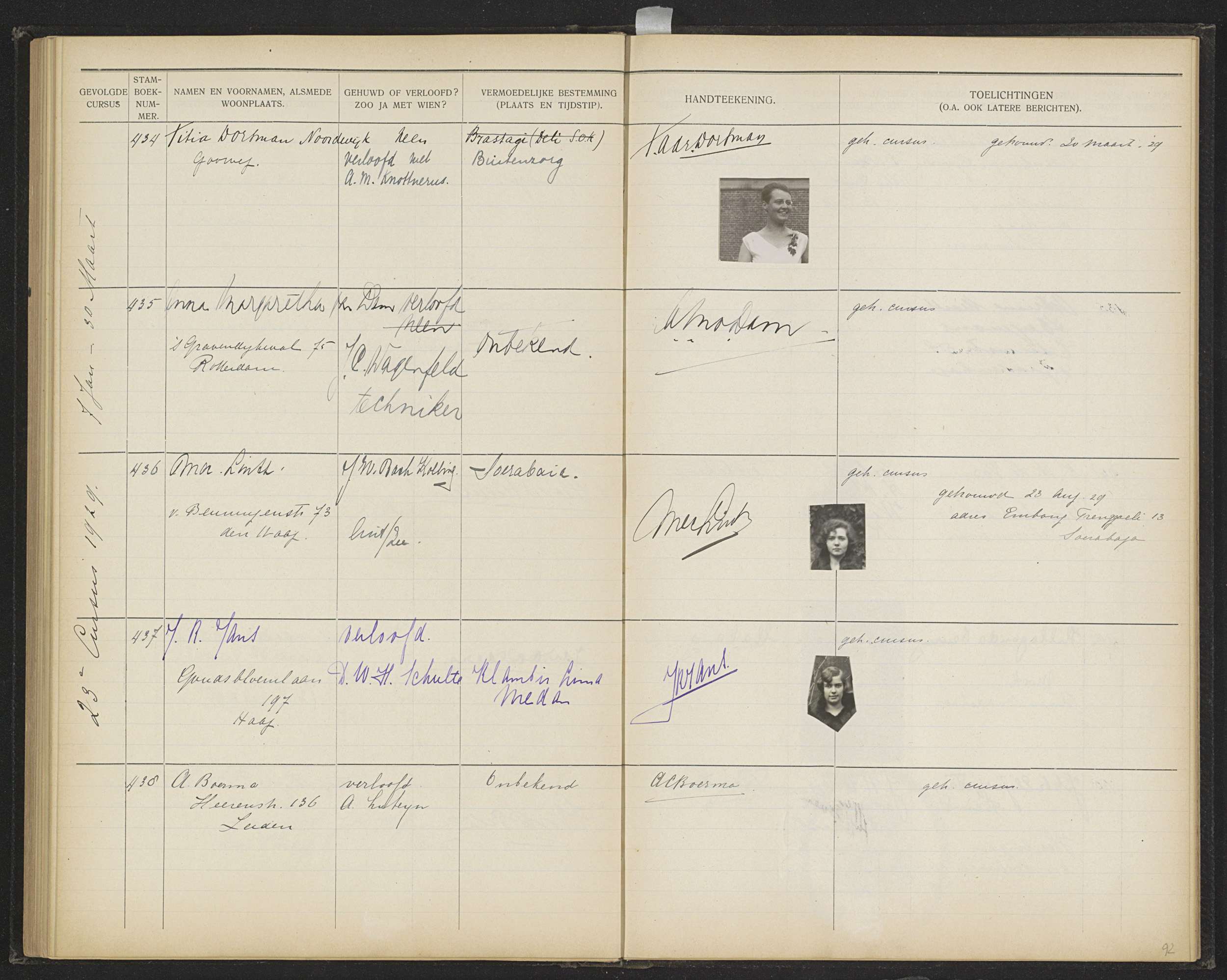 Blad 92 uit Stamboek van de leerlingen der Koloniale...