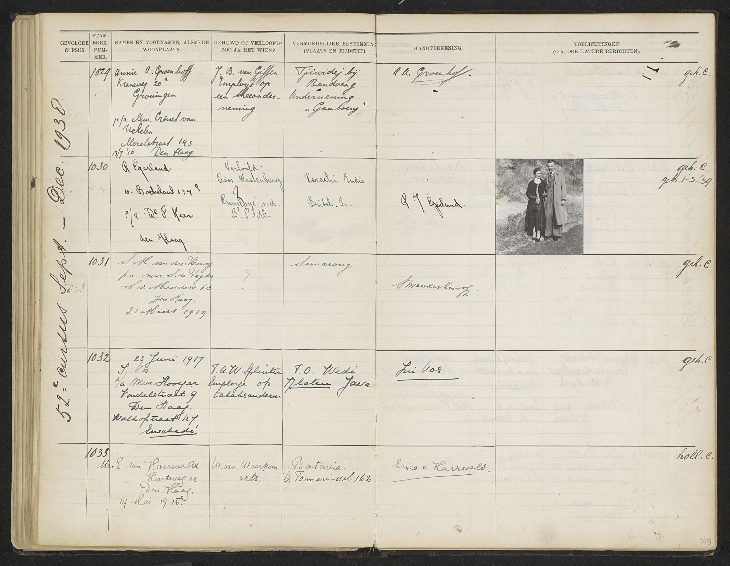 Blad 109 uit Stamboek van de leerlingen der Kolonial...