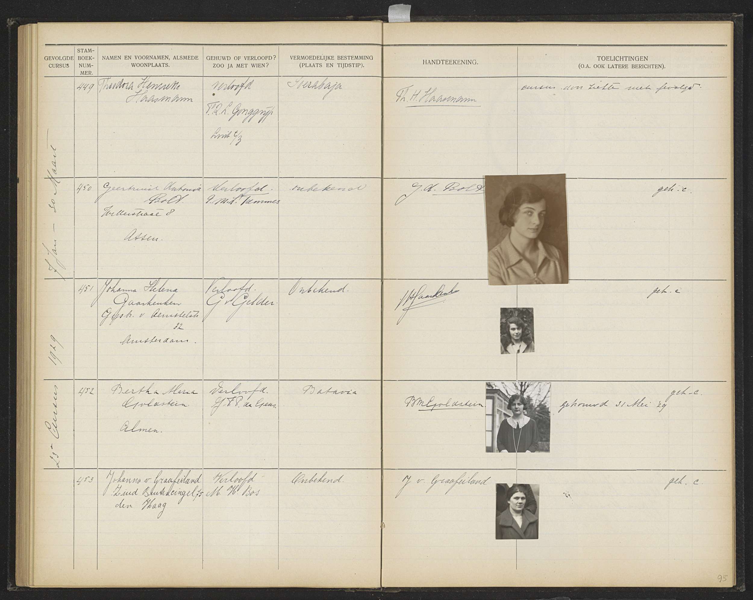 Blad 95 uit Stamboek van de leerlingen der Koloniale...