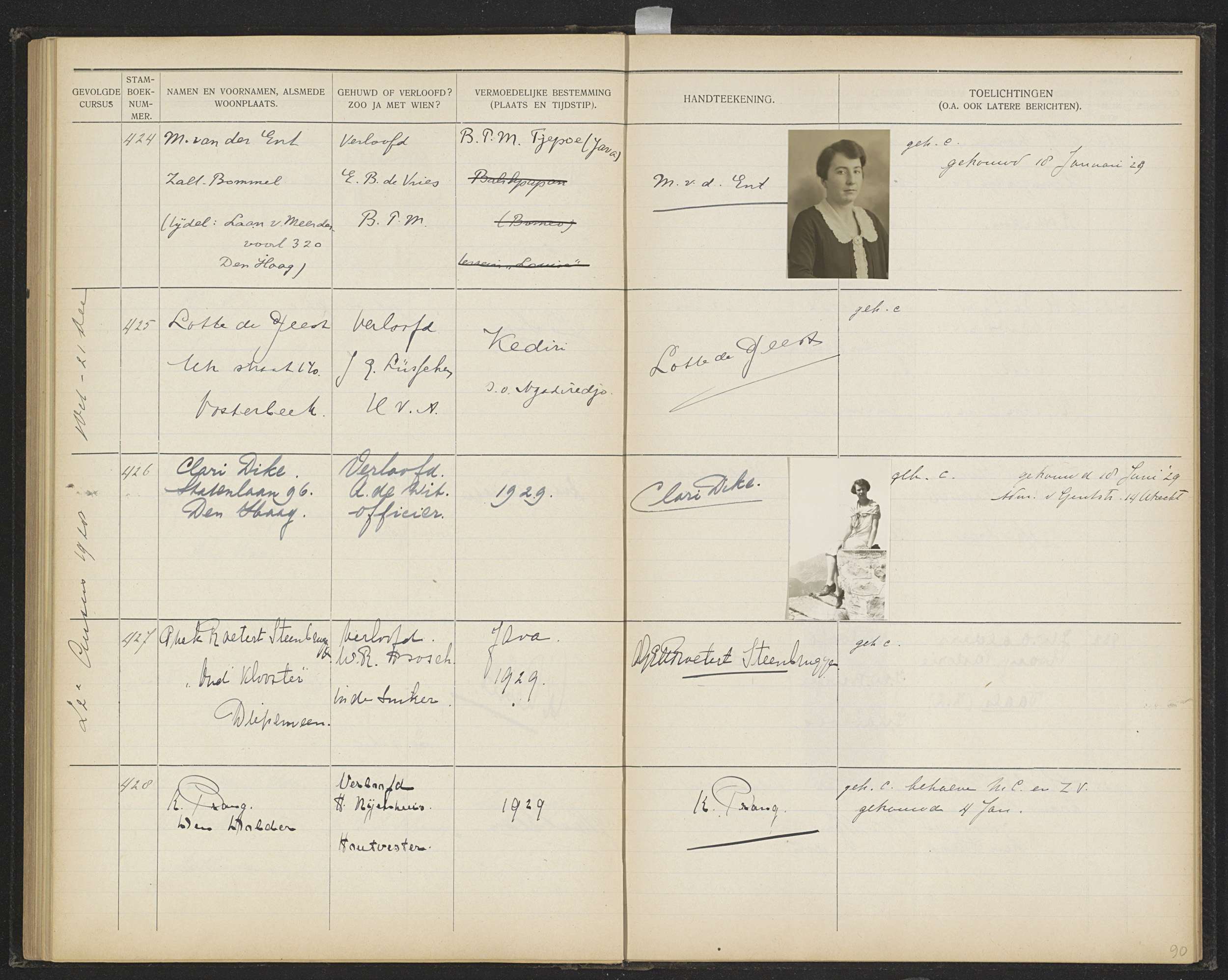 Blad 90 uit Stamboek van de leerlingen der Koloniale...