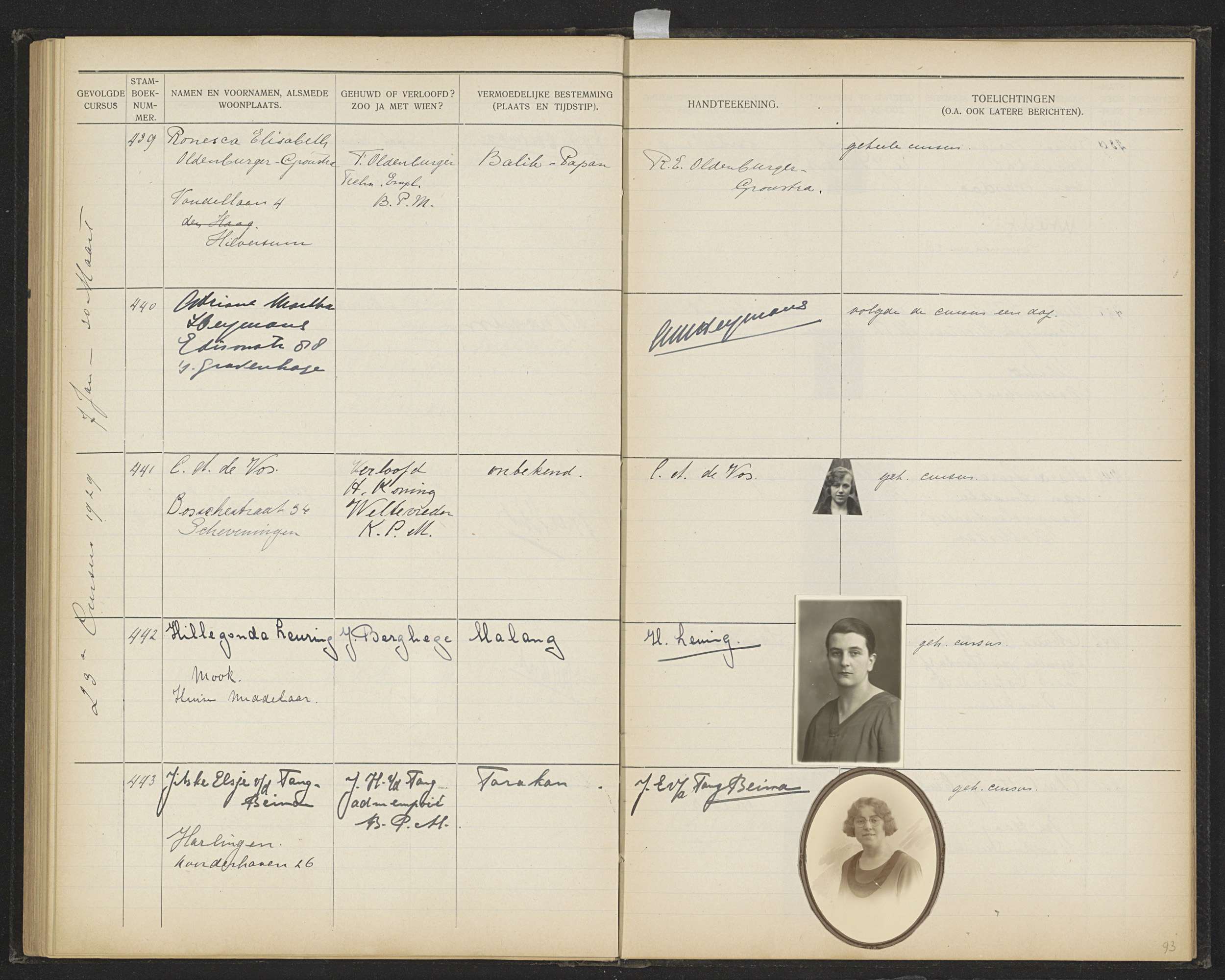 Blad 93 uit Stamboek van de leerlingen der Koloniale...