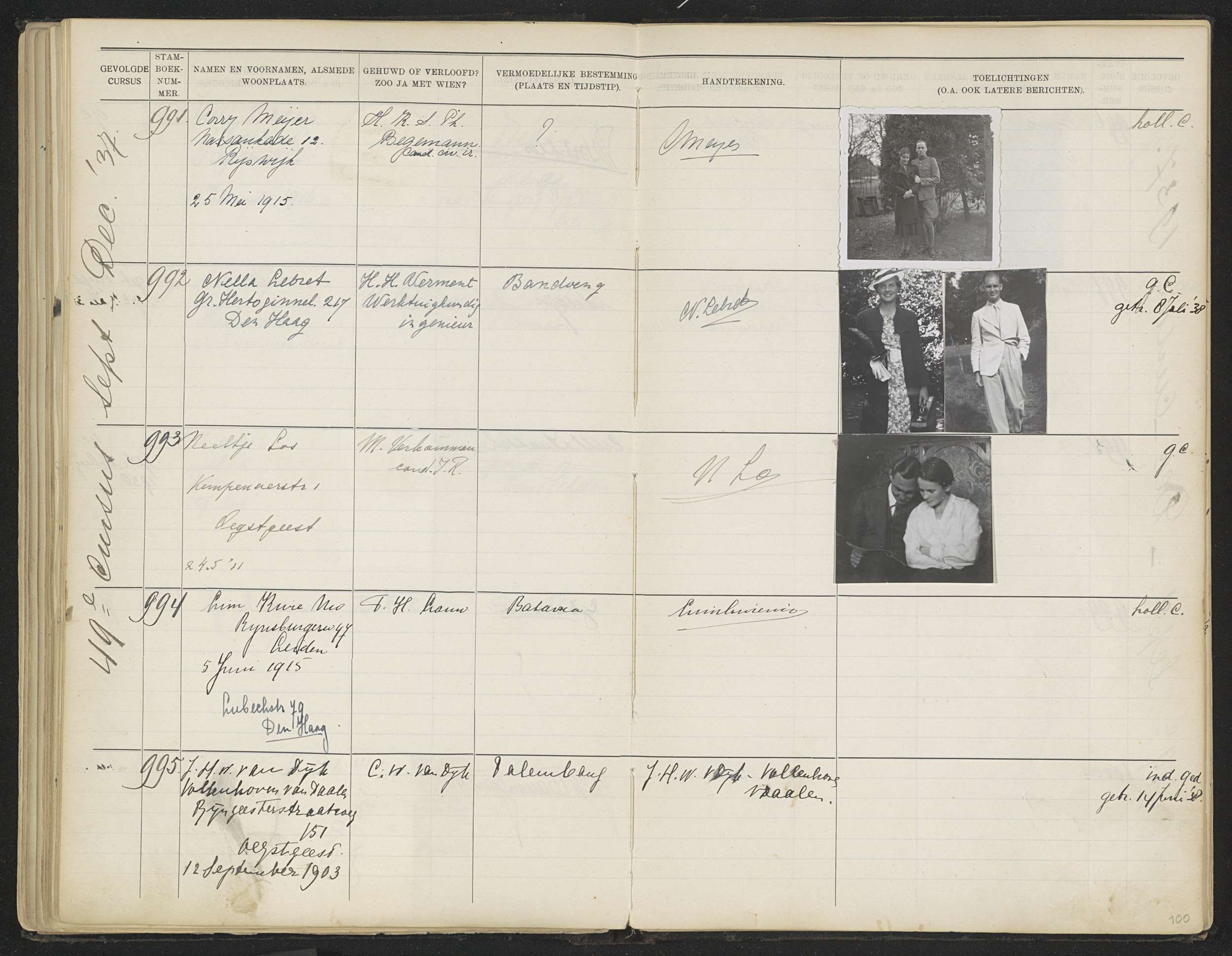Blad 100 uit Stamboek van de leerlingen der Kolonial...