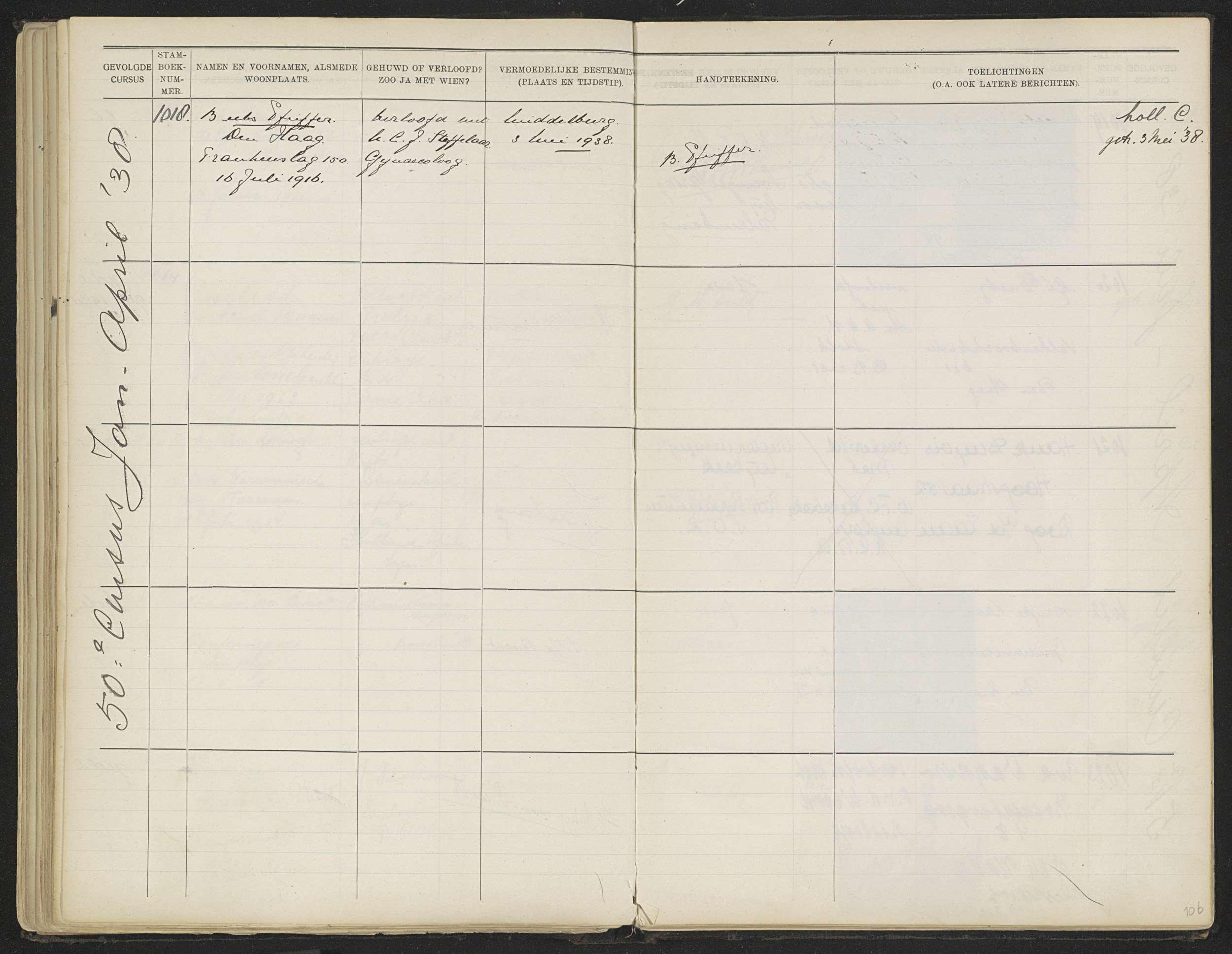 Blad 106 uit Stamboek van de leerlingen der Kolonial...