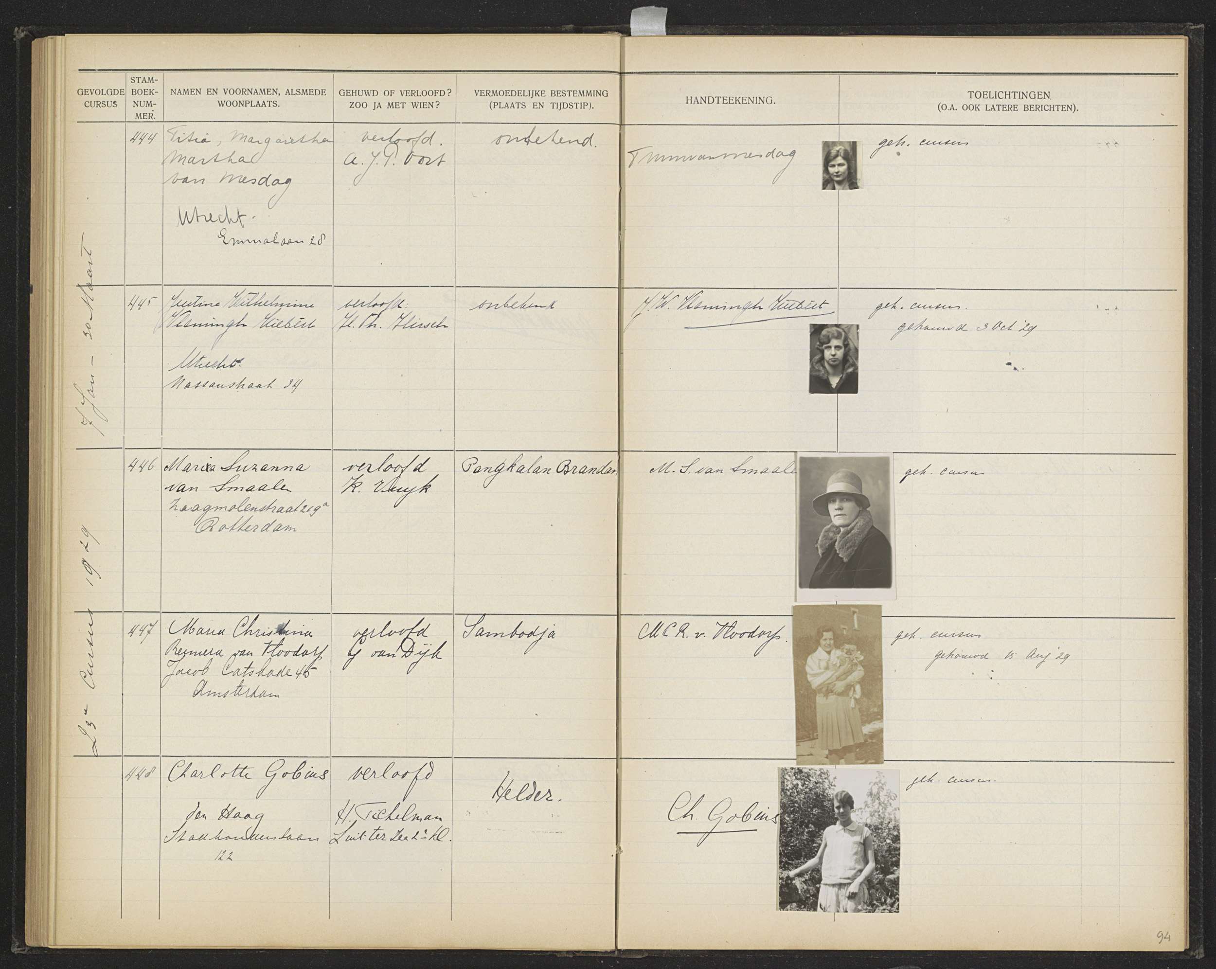 Blad 94 uit Stamboek van de leerlingen der Koloniale...