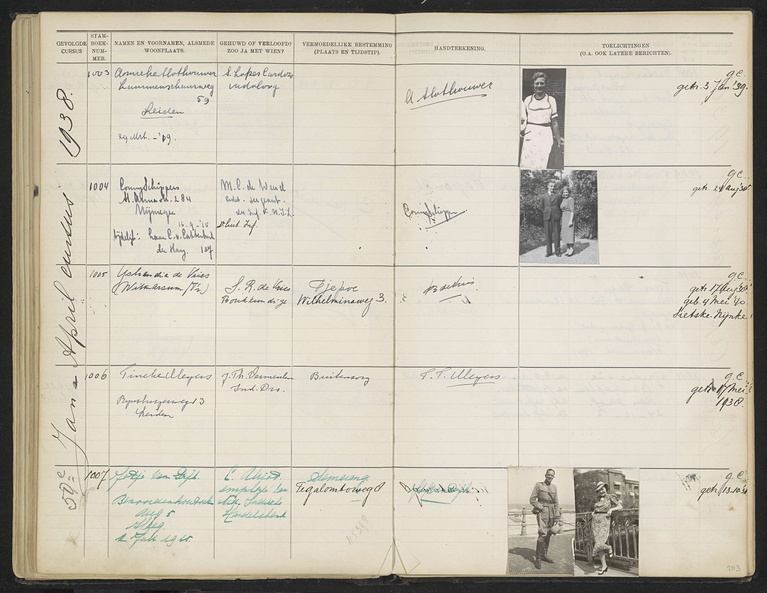 Blad 103 uit Stamboek van de leerlingen der Kolonial...