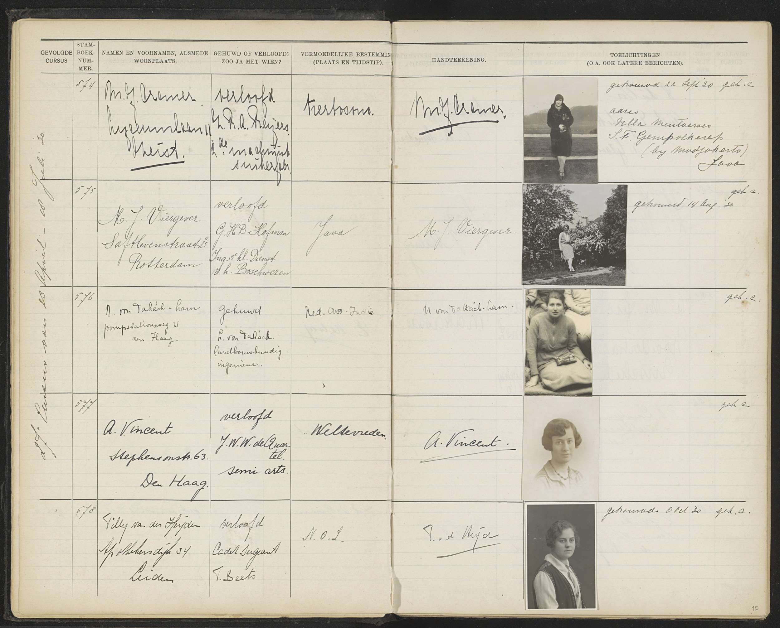 Blad 10 uit Stamboek van de leerlingen der Koloniale...