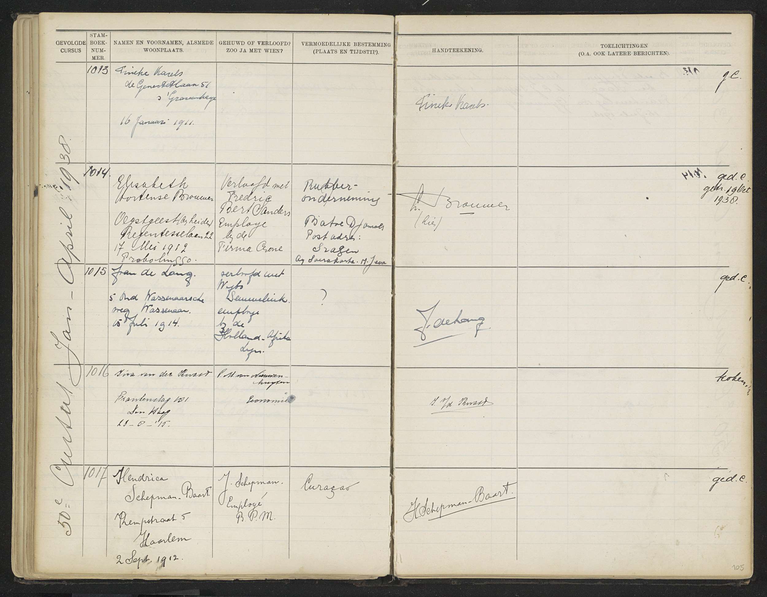 Blad 105 uit Stamboek van de leerlingen der Kolonial...