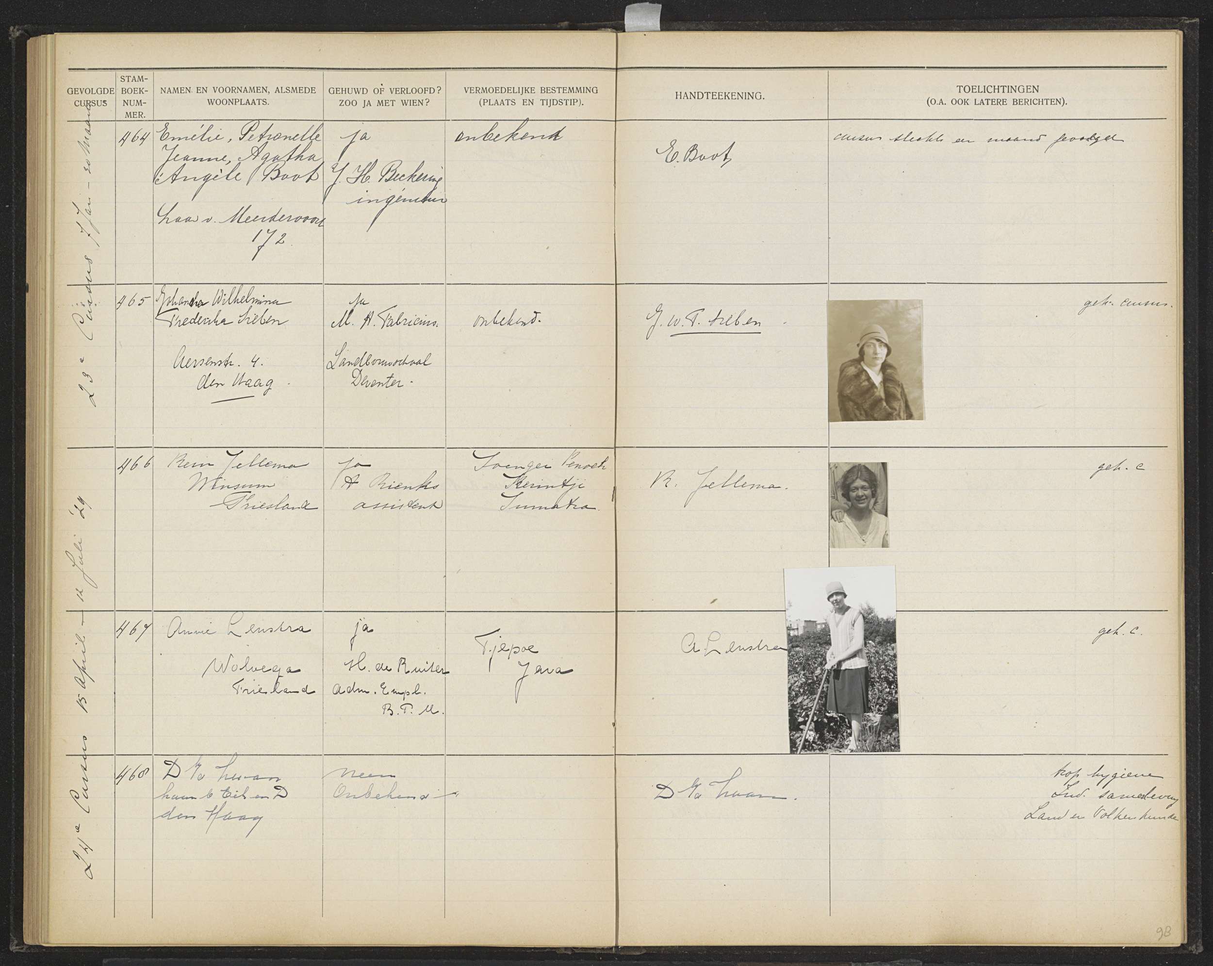Blad 98 uit Stamboek van de leerlingen der Koloniale...