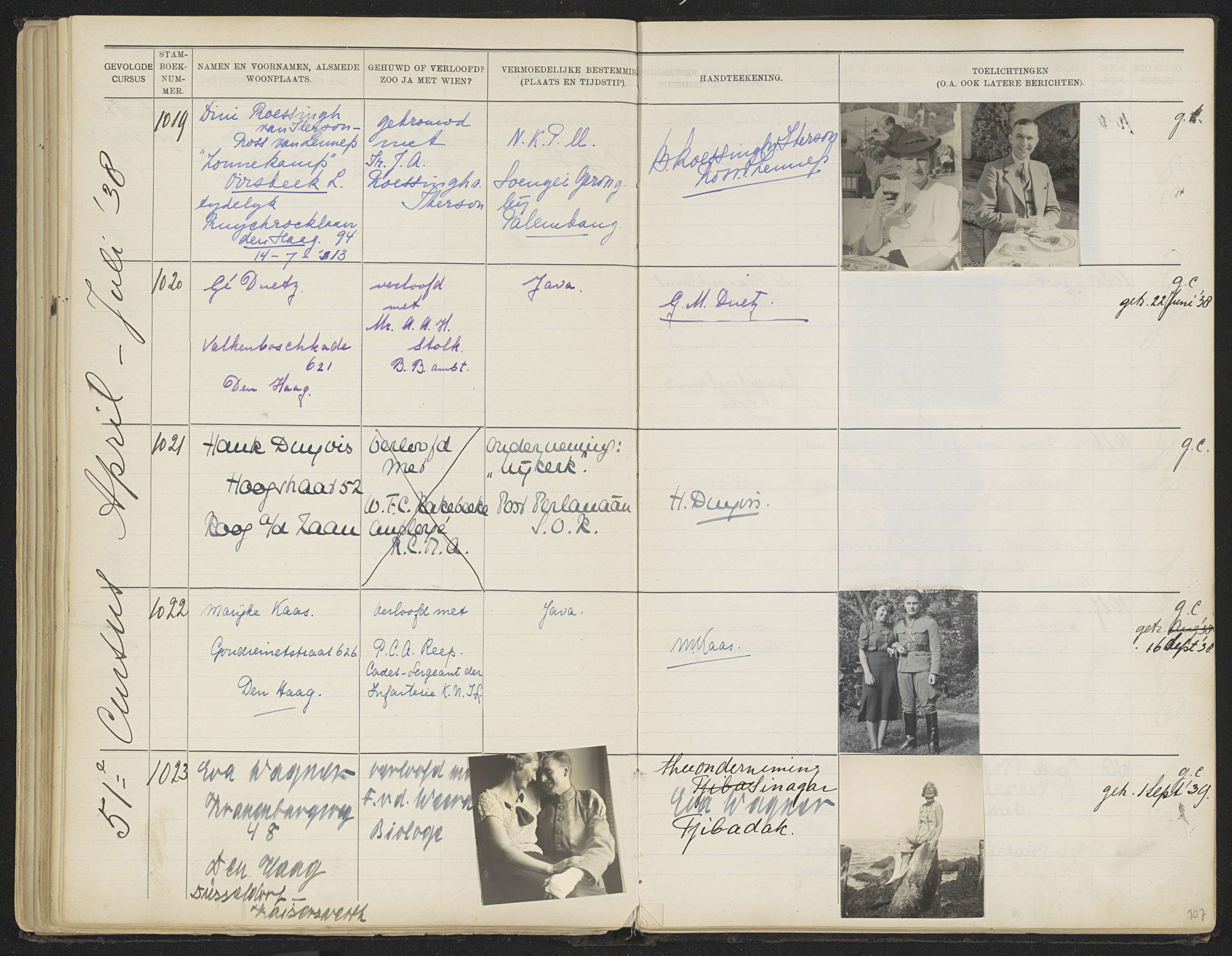 Blad 107 uit Stamboek van de leerlingen der Kolonial...