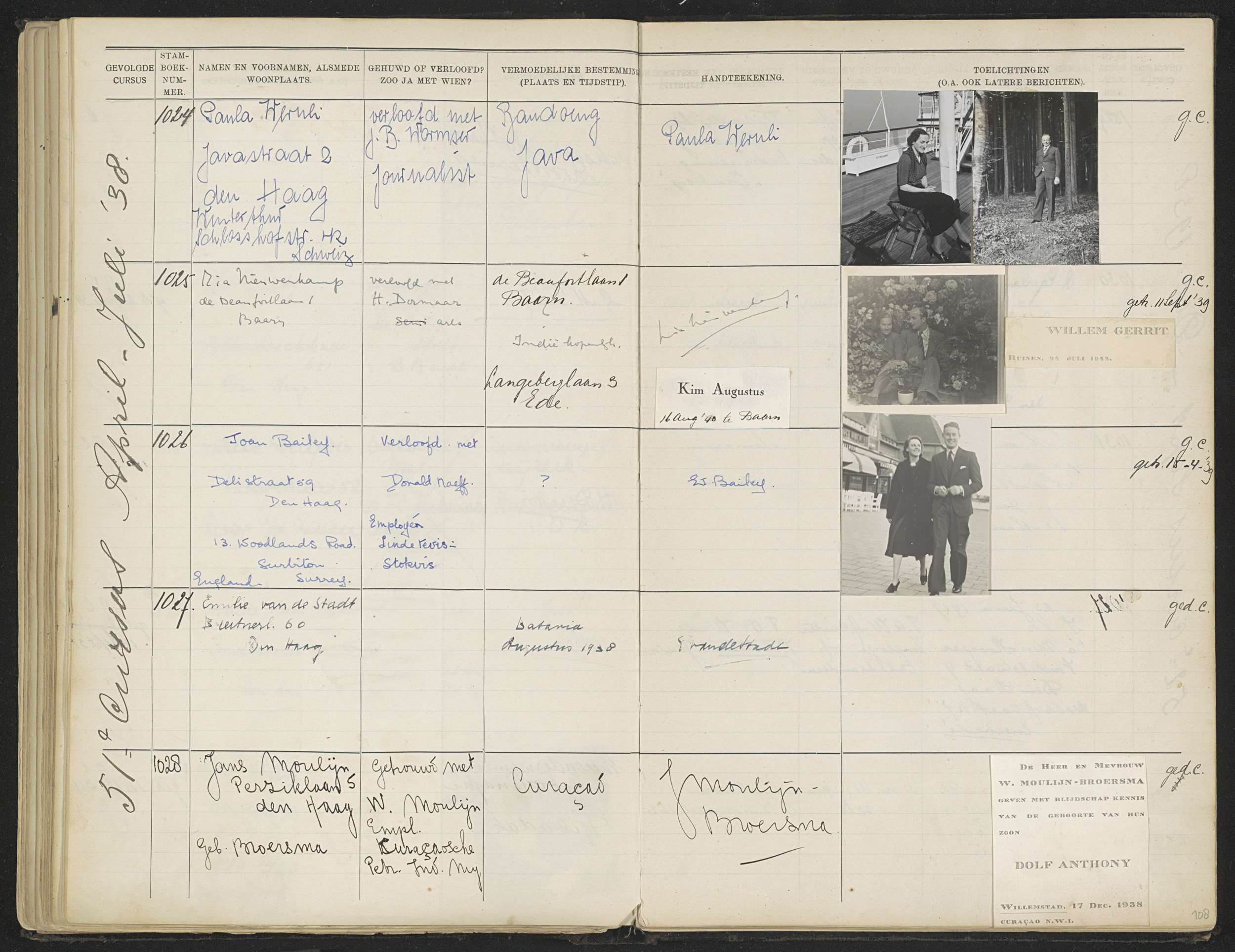 Blad 108 uit Stamboek van de leerlingen der Kolonial...