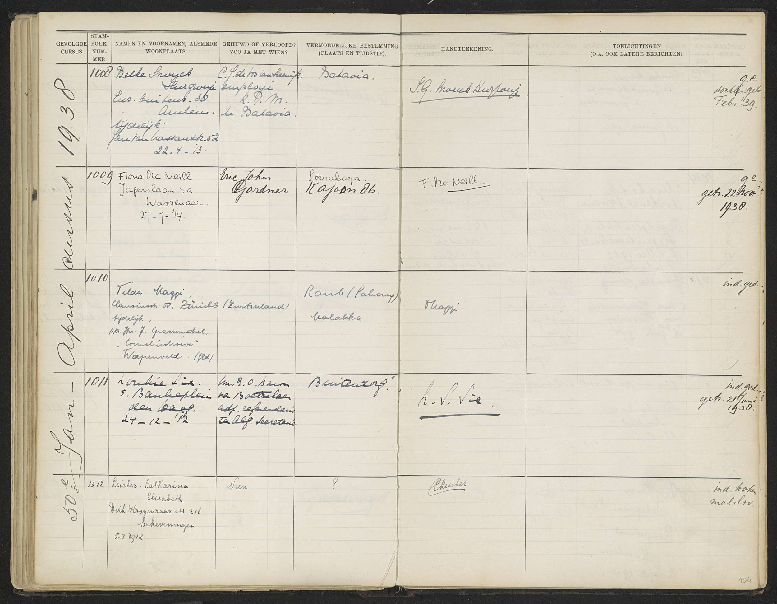 Blad 104 uit Stamboek van de leerlingen der Kolonial...