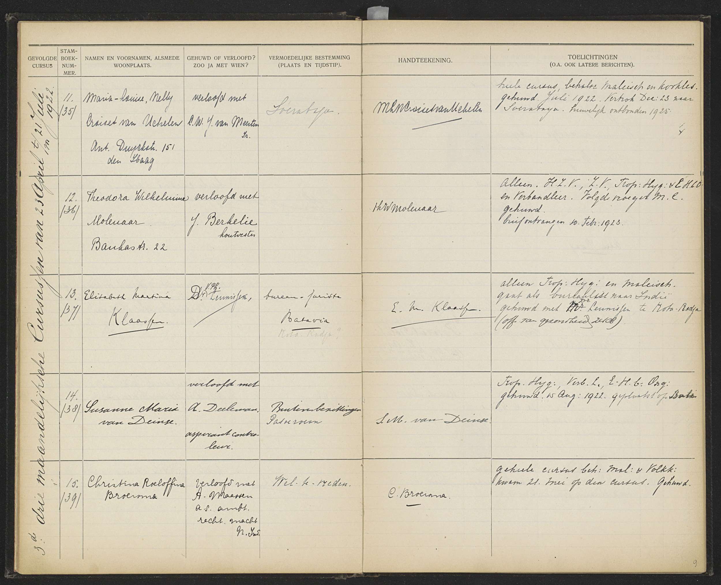 Blad 9 uit Stamboek van de leerlingen der Koloniale ...