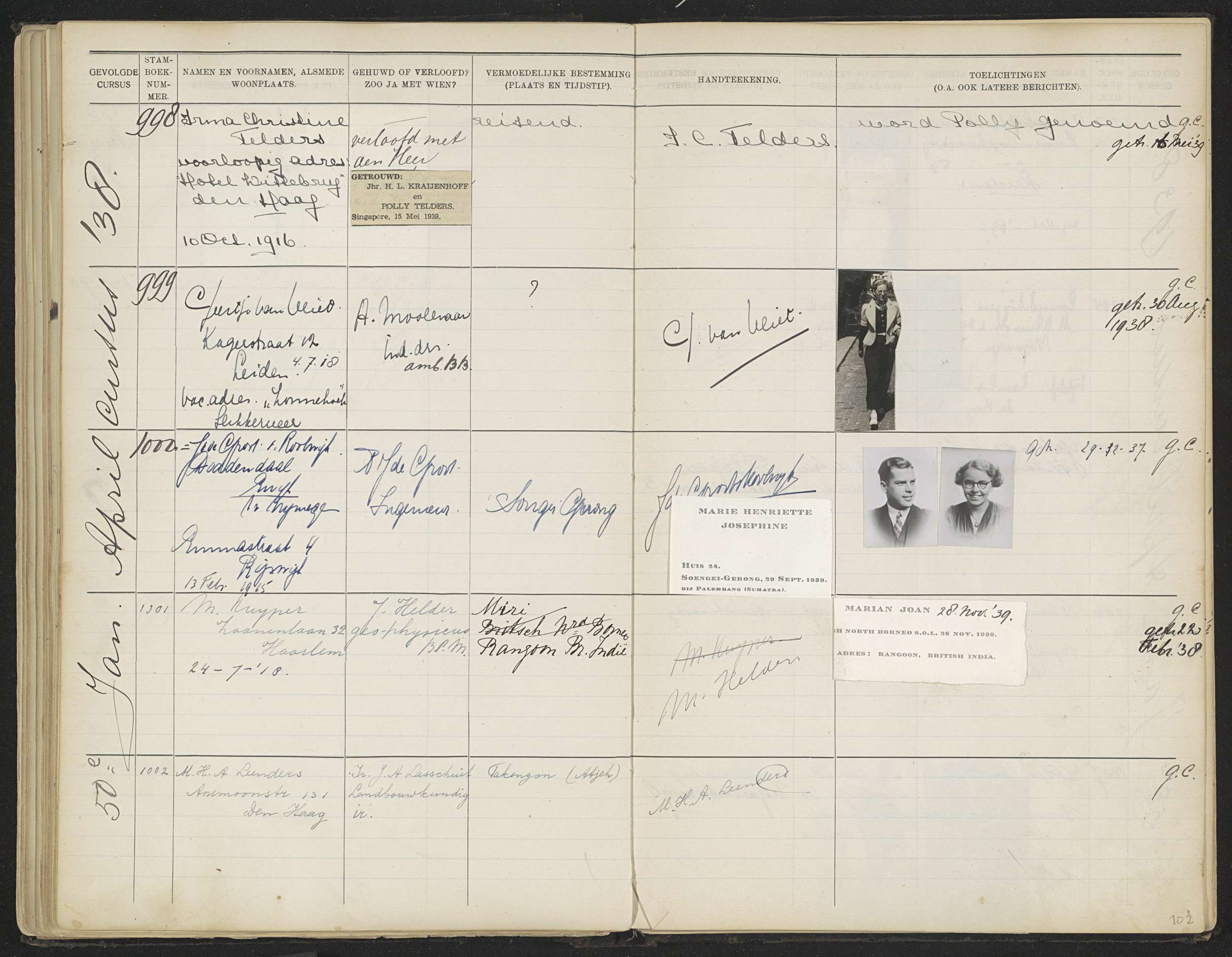 Blad 102 uit Stamboek van de leerlingen der Kolonial...