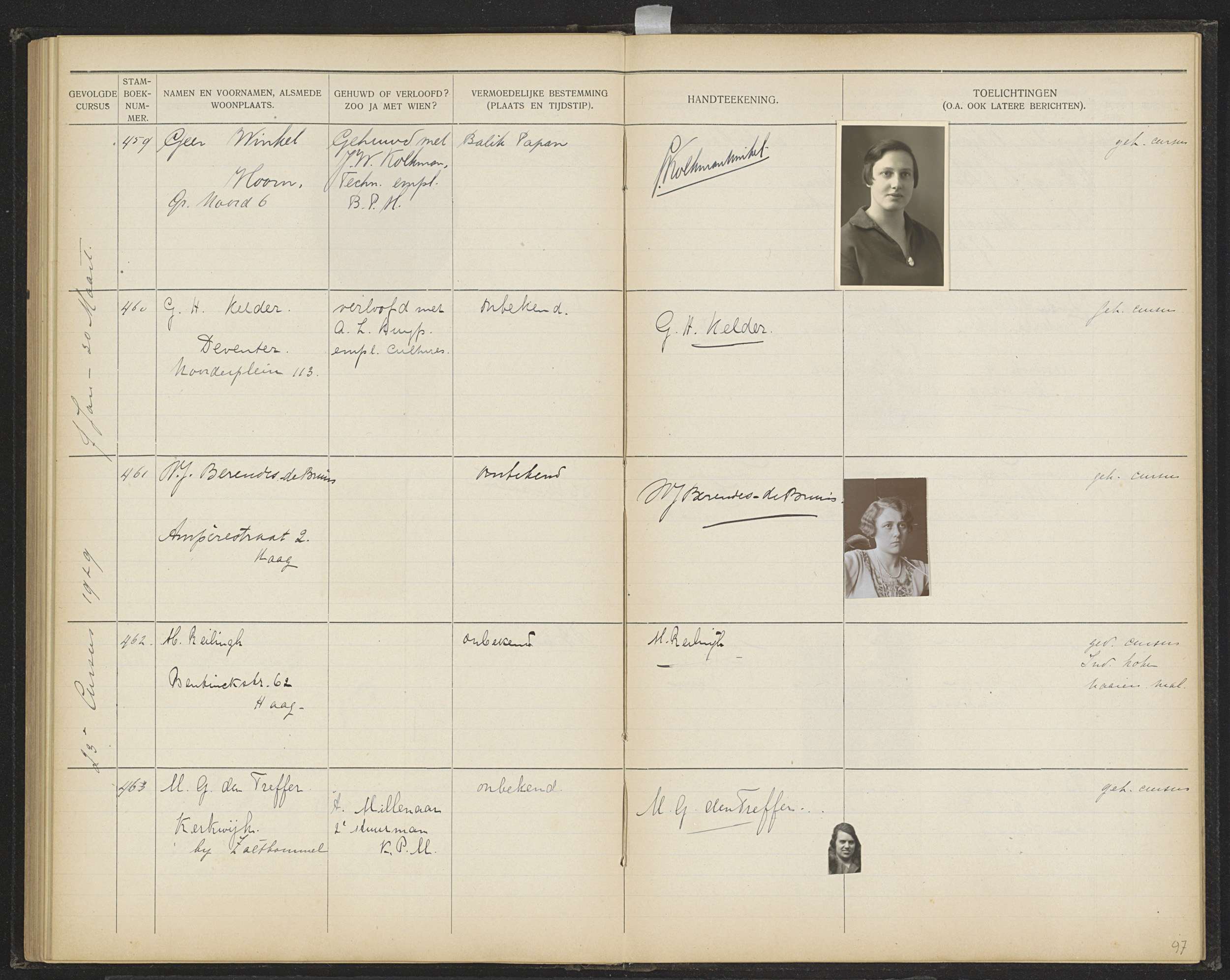 Blad 97 uit Stamboek van de leerlingen der Koloniale...
