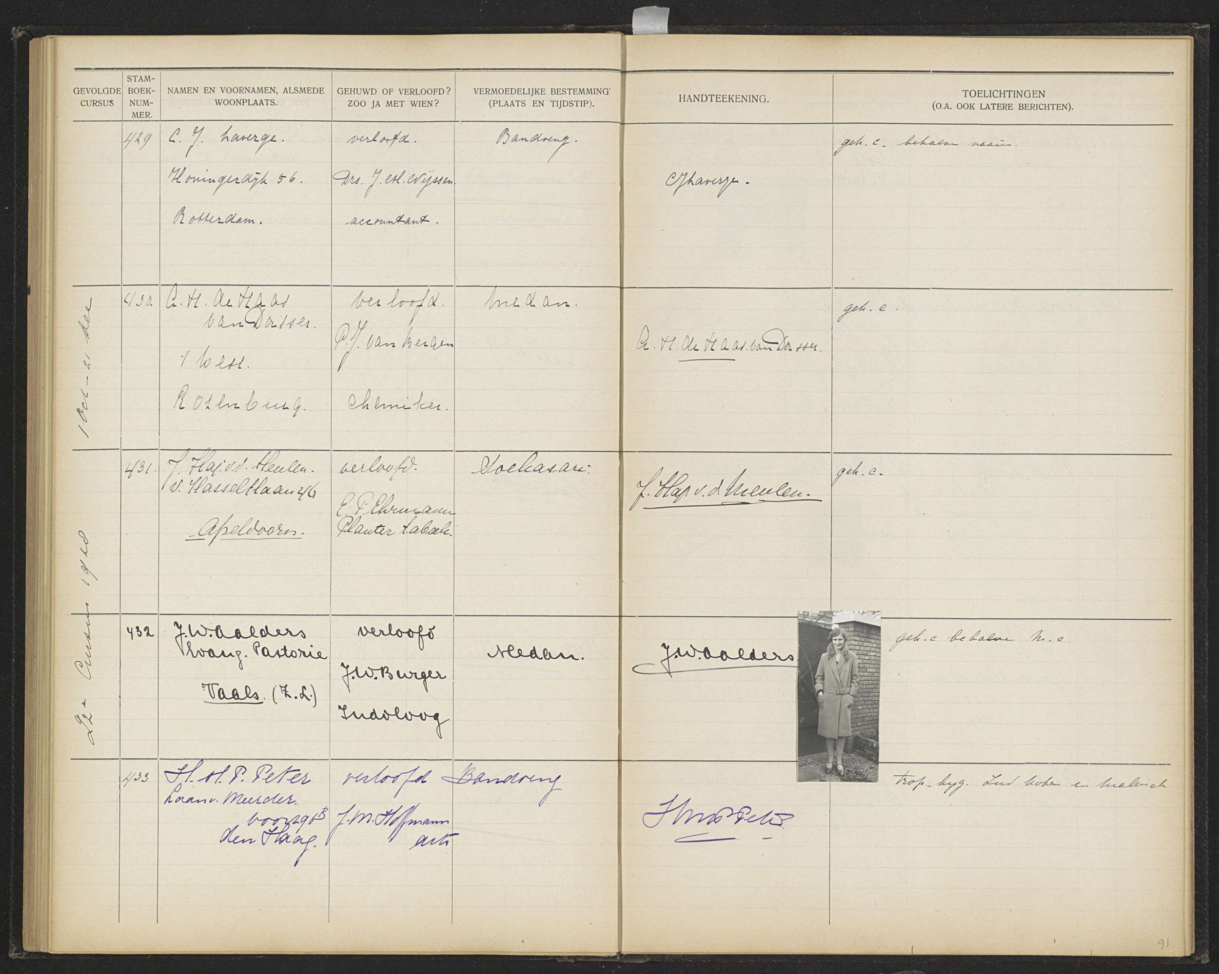 Blad 91 uit Stamboek van de leerlingen der Koloniale...