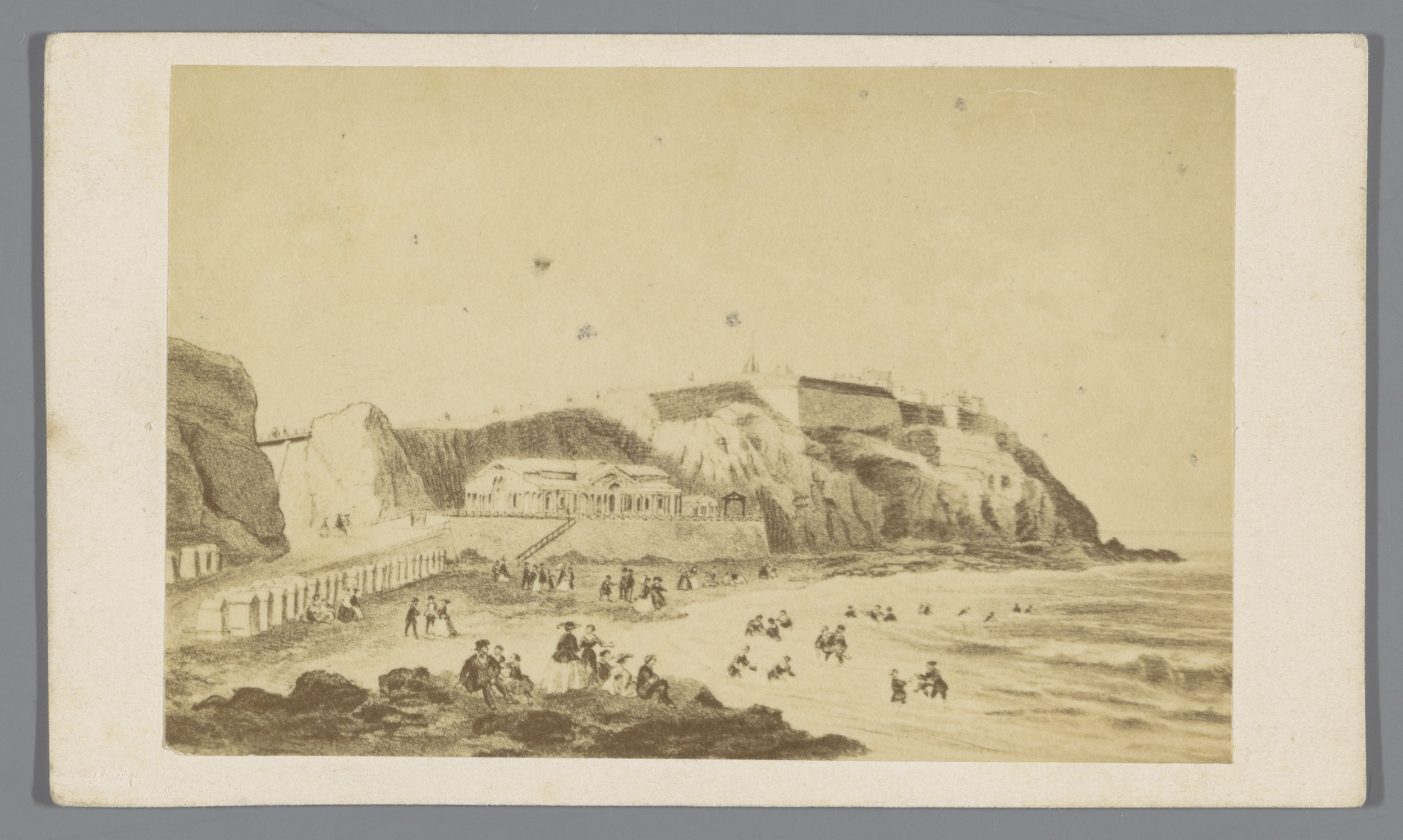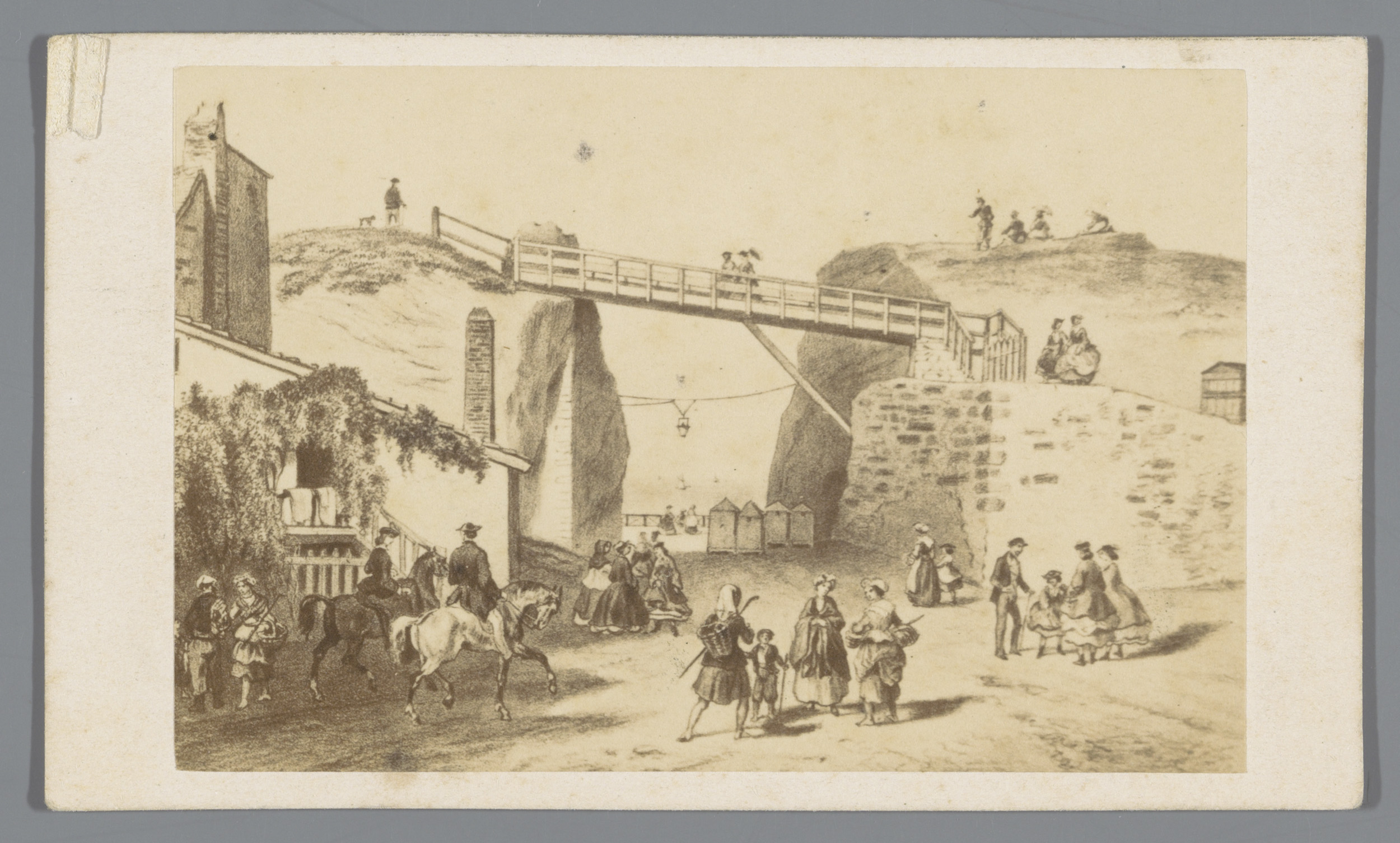 Fotoreproductie van een tekening van het strand van ...