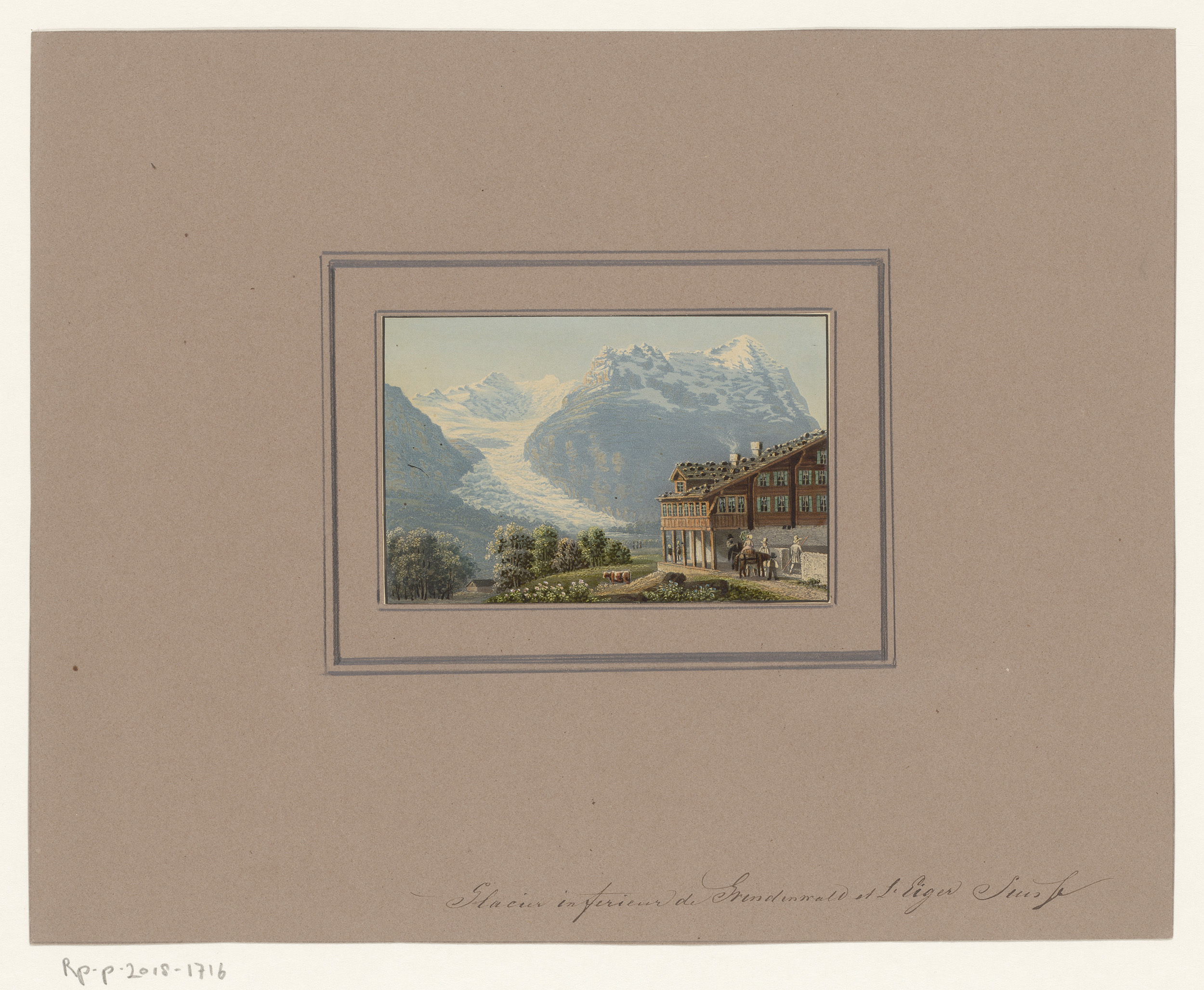 Gezicht op een gletsjer bij het dorp Grindelwald