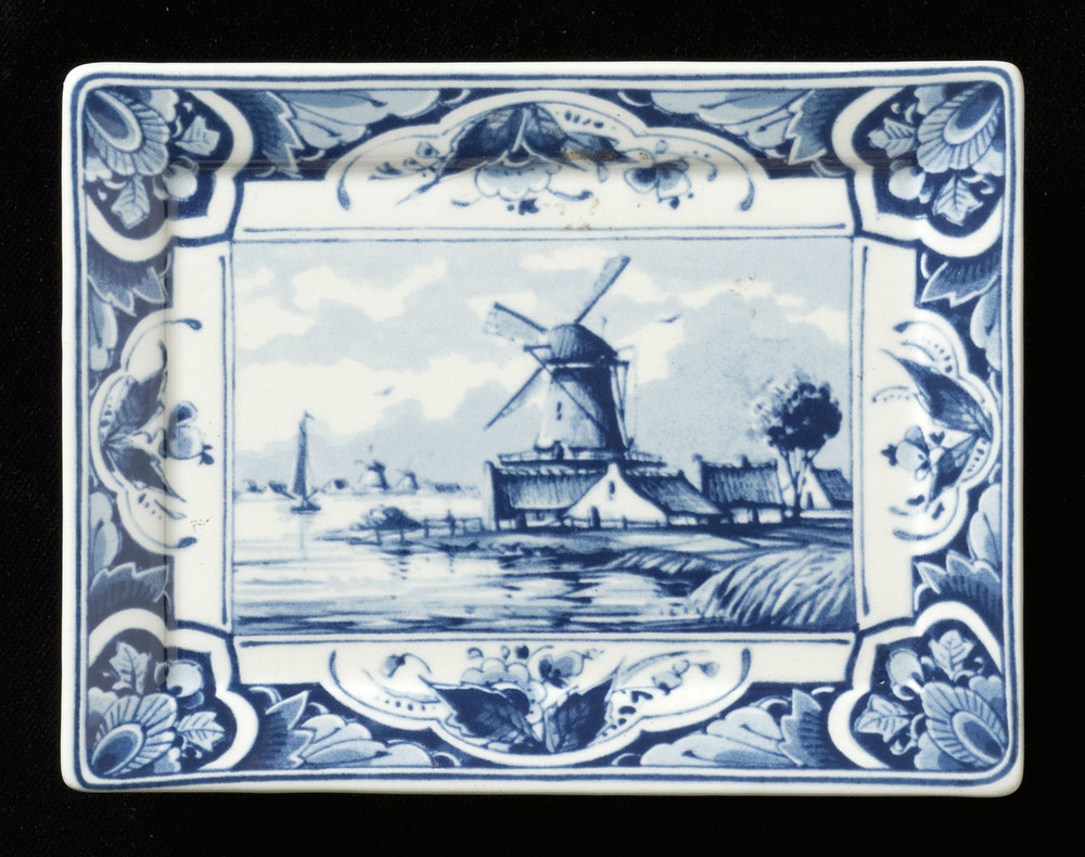 Tegelplaat in druktechniek, met voorstelling: molen ...