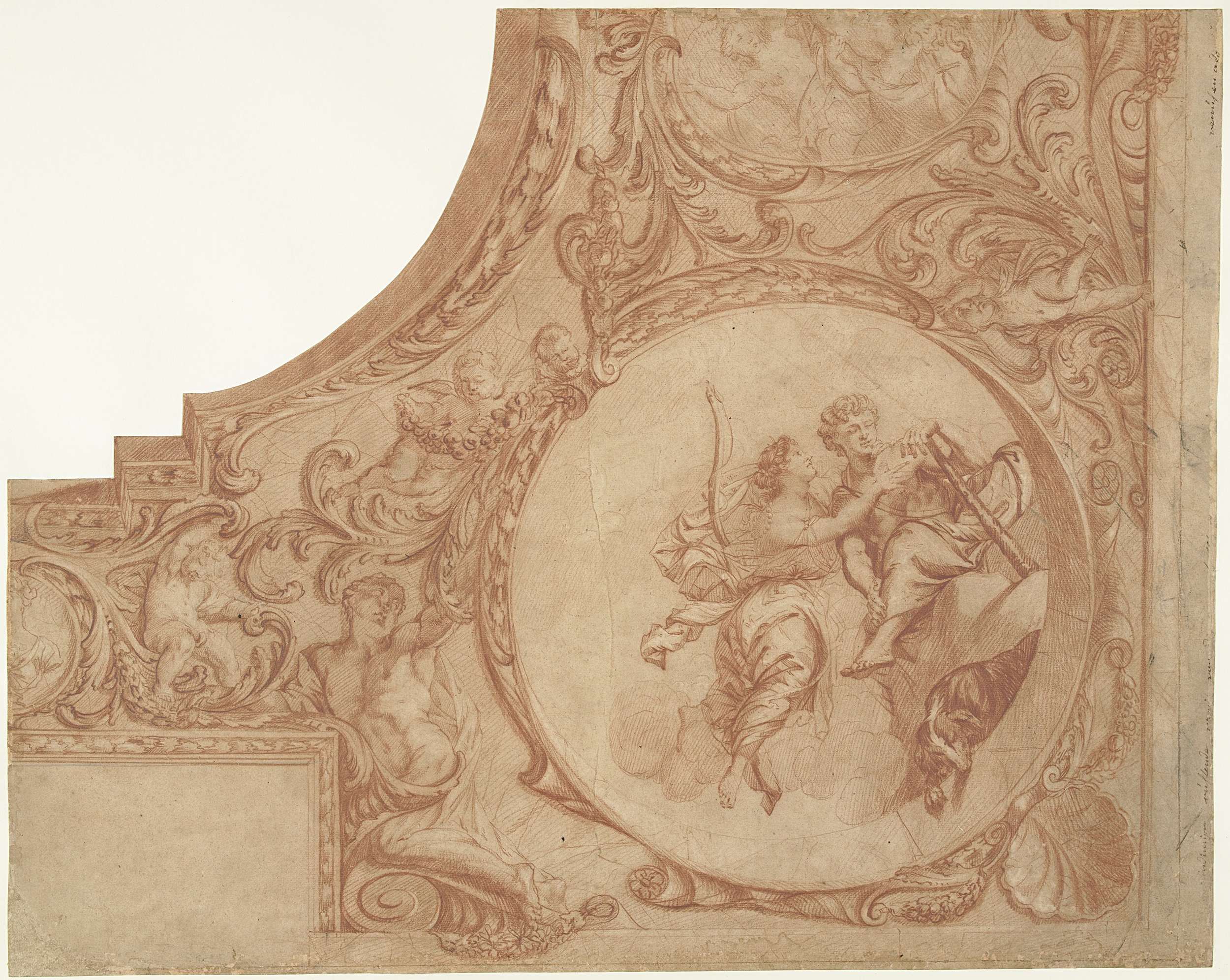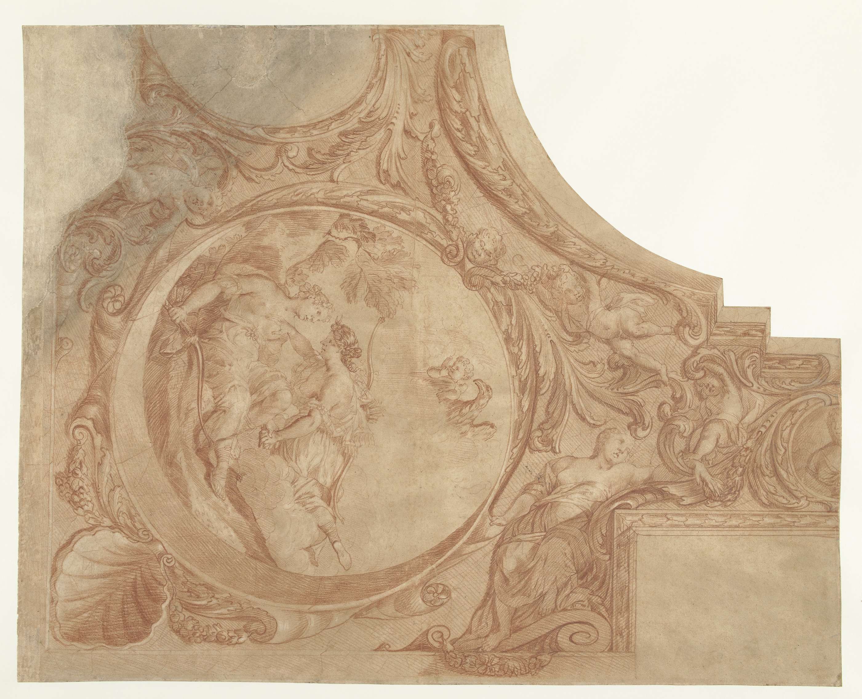 Ontwerp voor een hoekstuk van een plafond met Diana ...