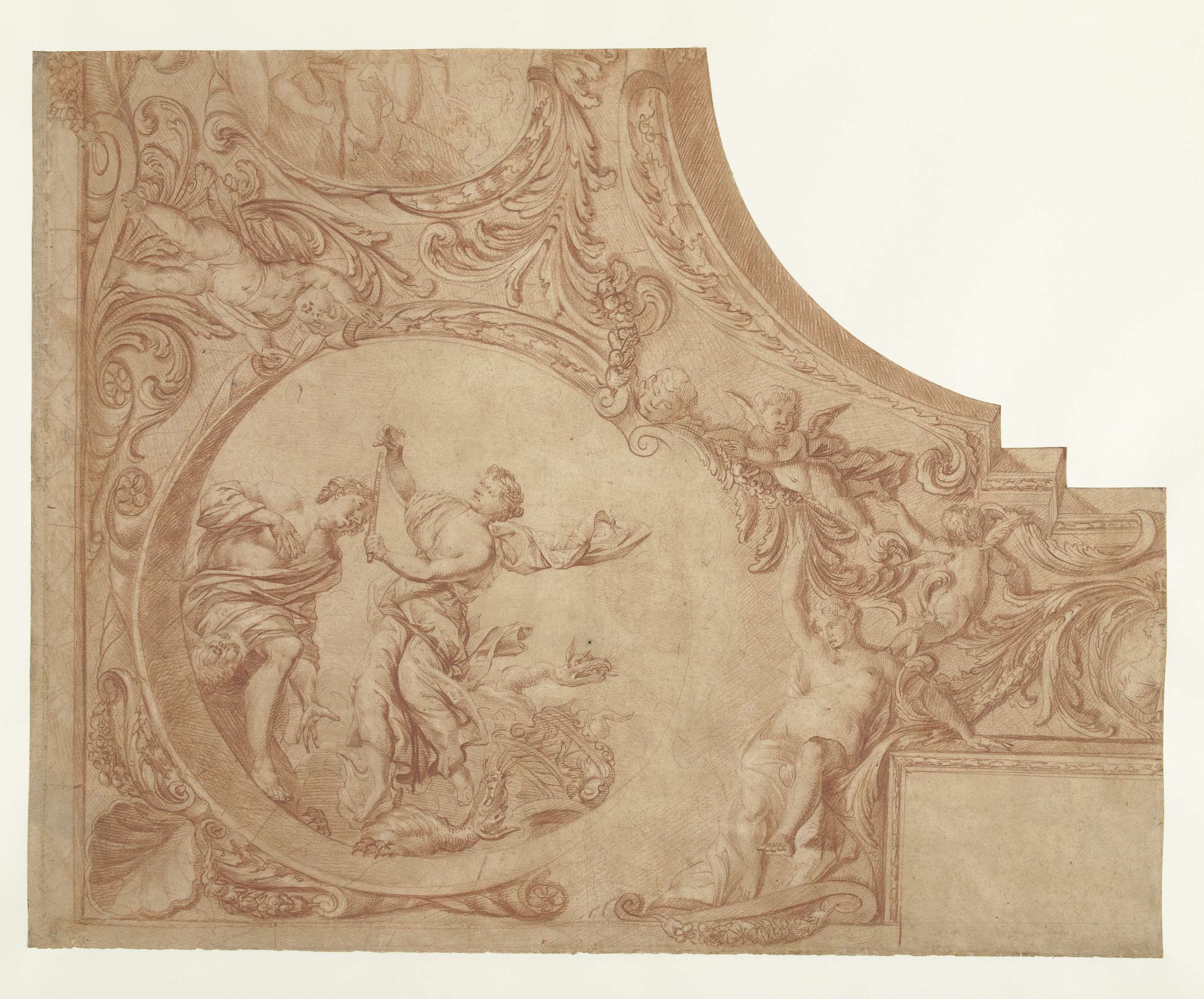 Ontwerp voor een hoekstuk van plafond met Jupiter al...