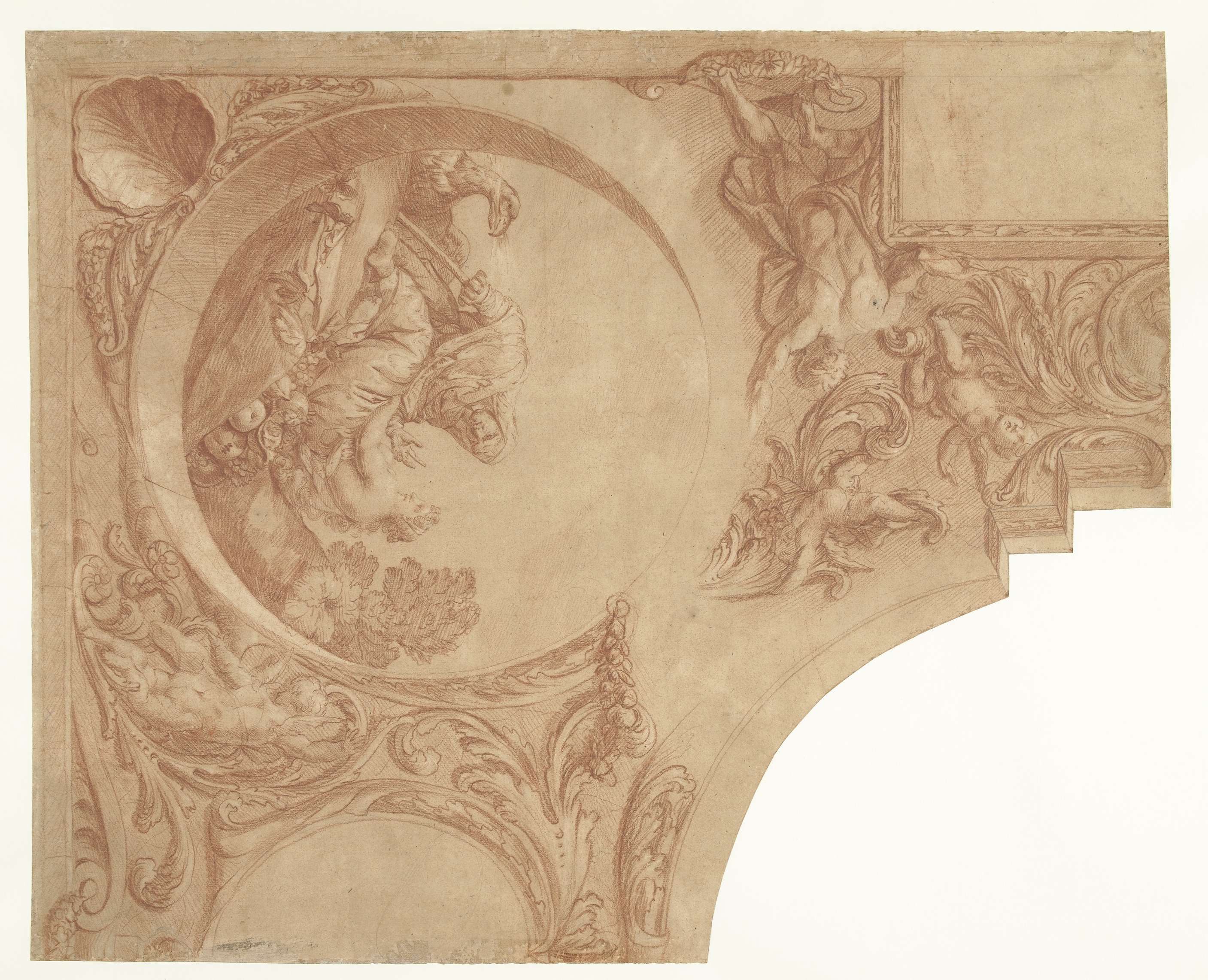 Ontwerp voor een hoekstuk van een plafond met figure...