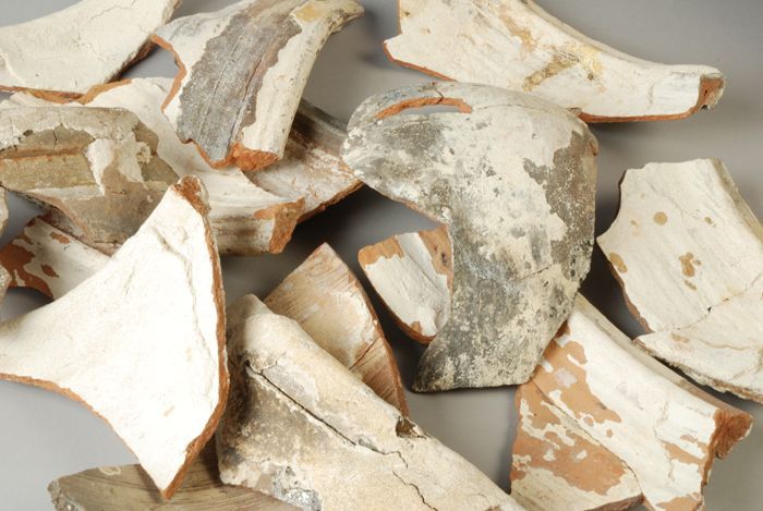 Fragmenten aardewerk pijpenpotten uit de afvalput va...