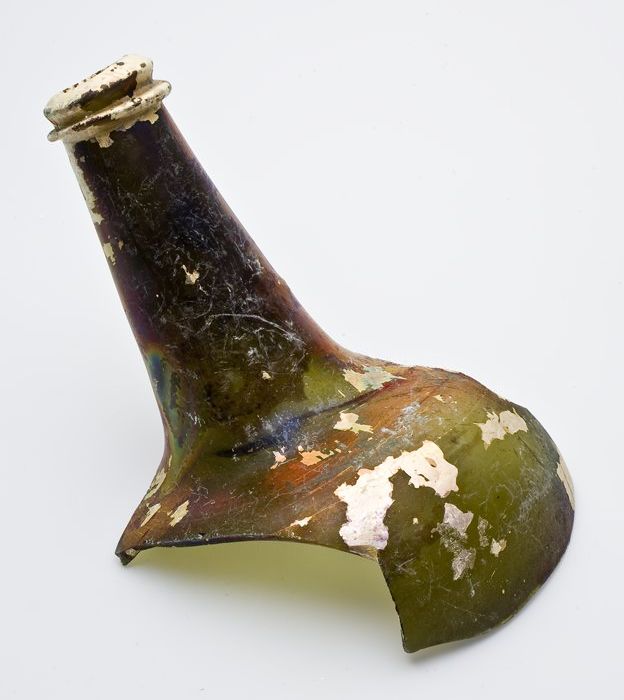 Fragment van schouders, hals en mond van buikfles