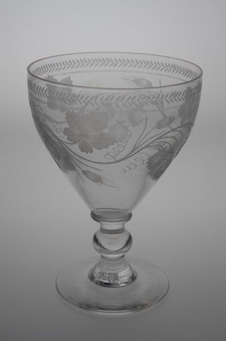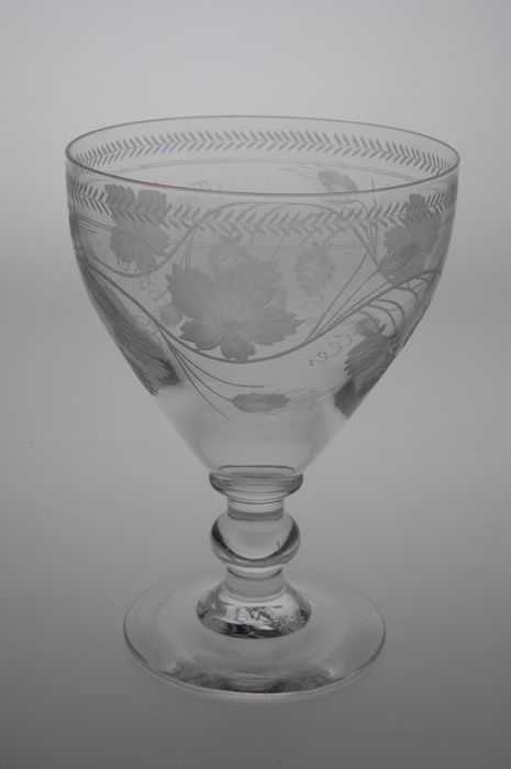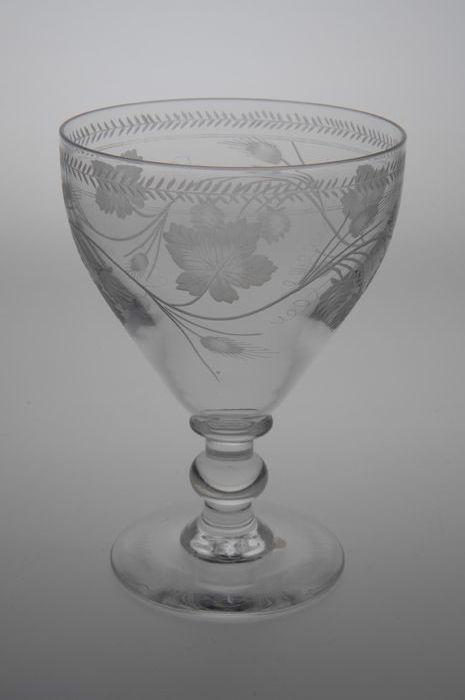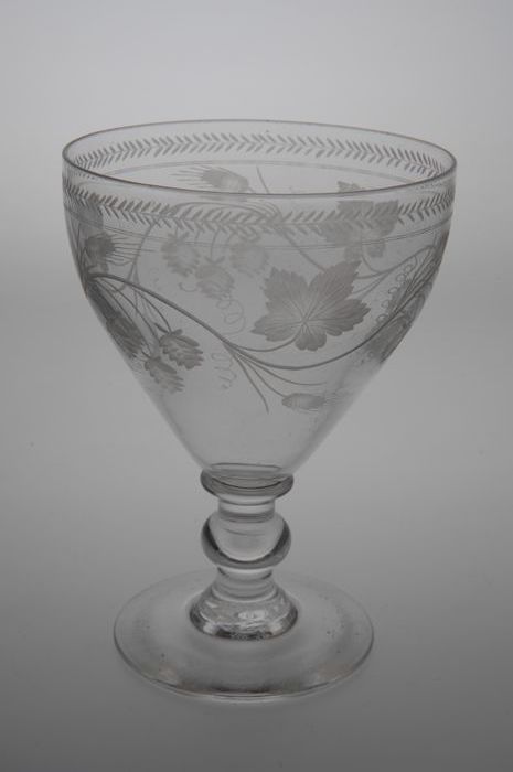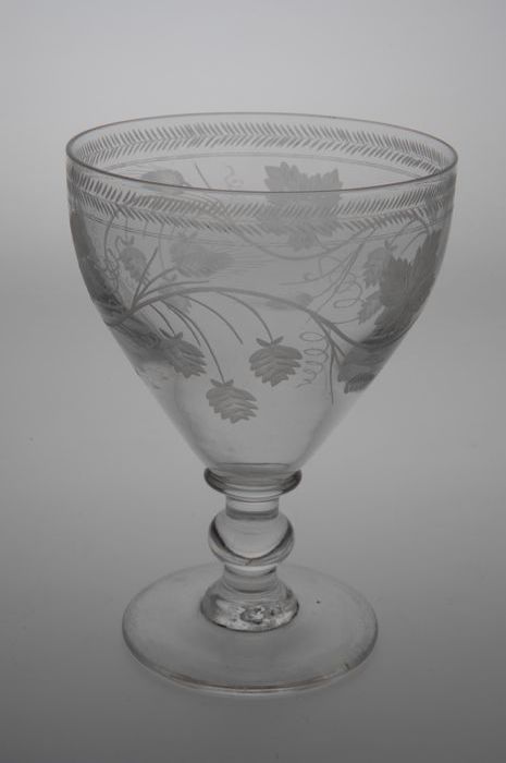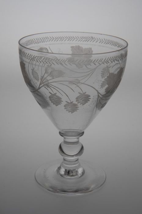 Kelkglas gegraveerd met hop en gerst motief