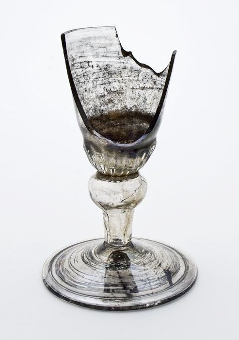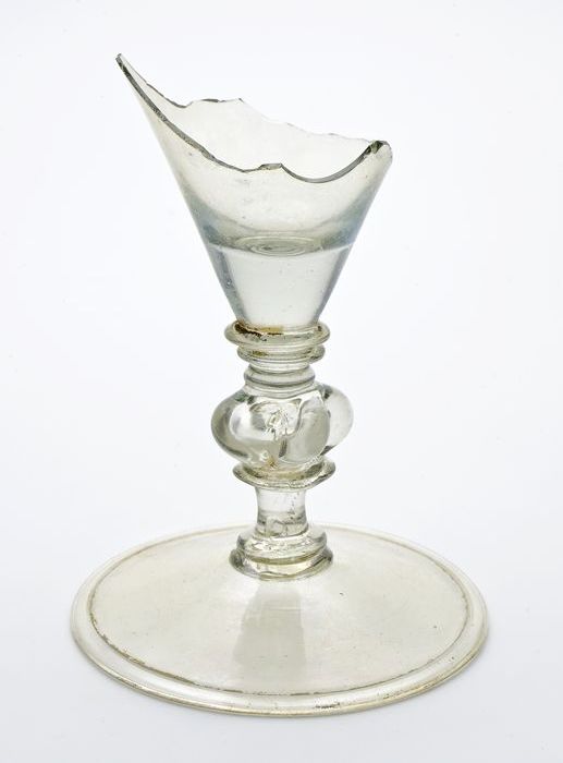 Fragment van voet, stam en deel kelk van kelkglas