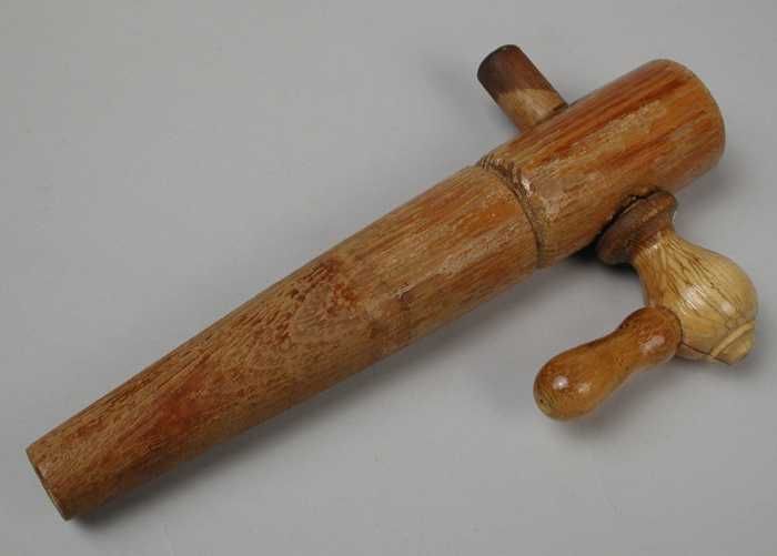 Tapethamer met rotan steel, om mee op houten wijnvat...