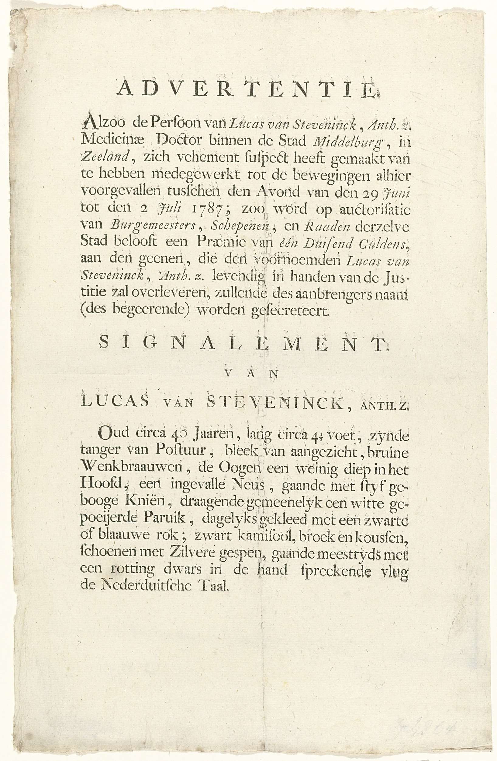 Doodbriefje van het overlijden van Lucas van Steveni...