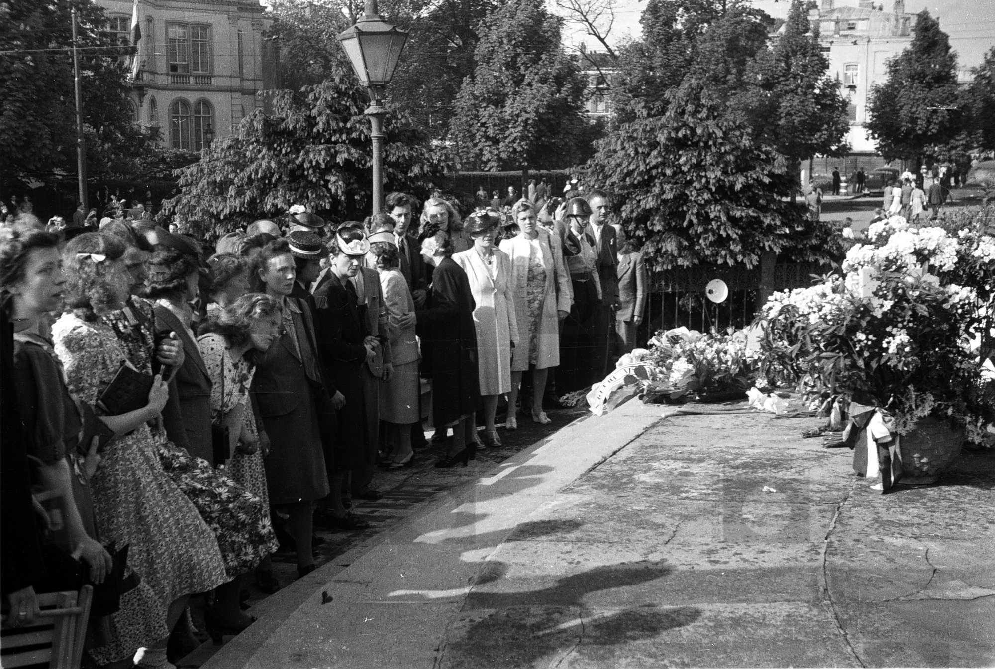 Publiek bij herdenking en kranslegging voor alle gev...