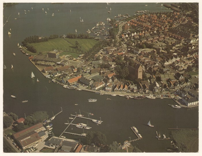 Luchtopname stadsdeel met de waterpoort te Sneek