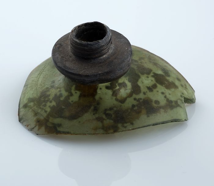 Fragment van groene fles, vierkant, grote tinnen slu...