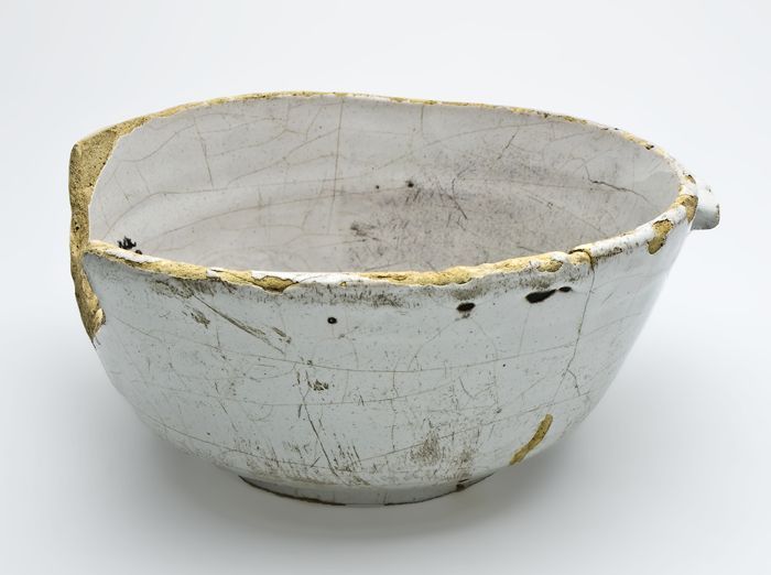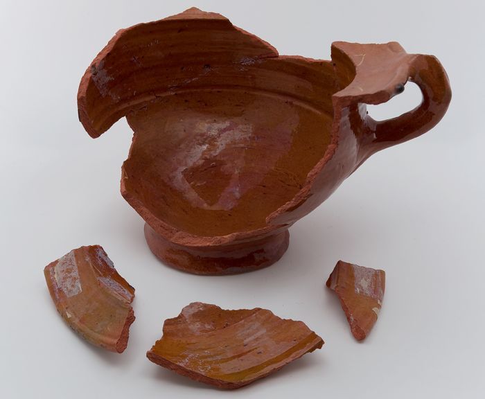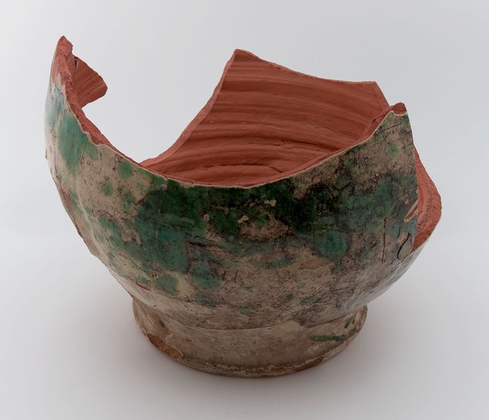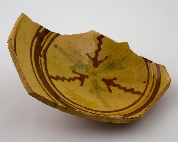 Bodem van grote geglazuurde pot, Spaans aardewerk