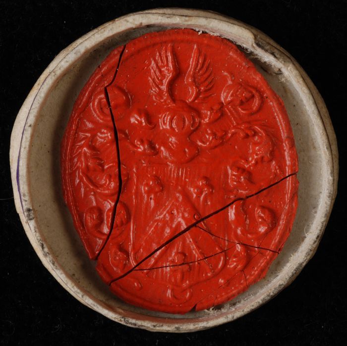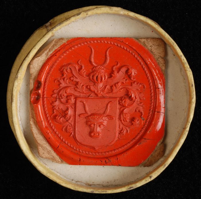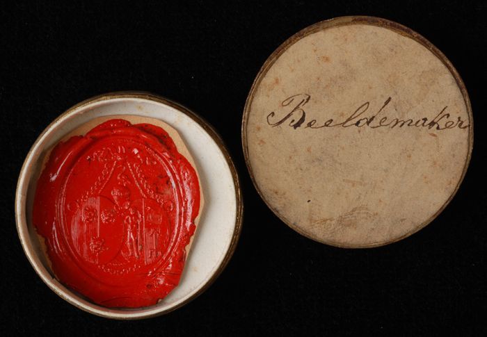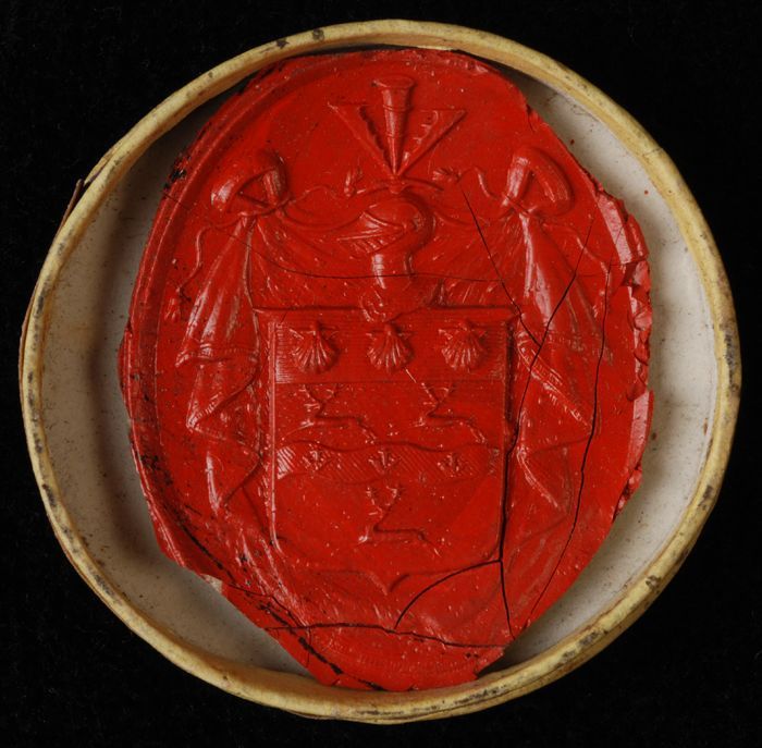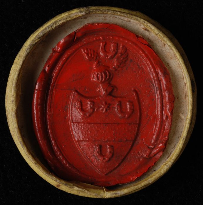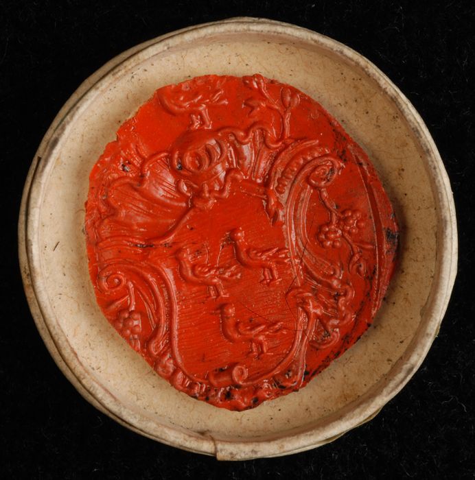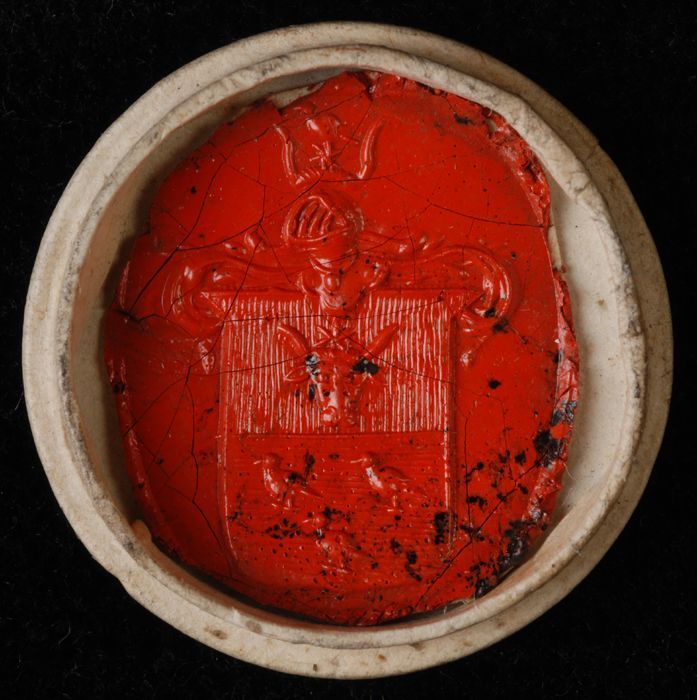 Lakzegel met familiewapen, alliantiewapen van onbeke...