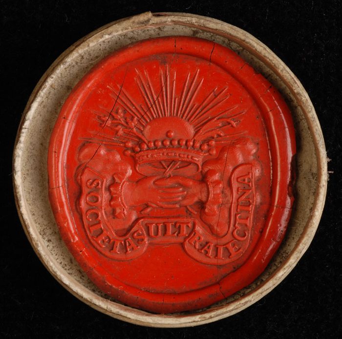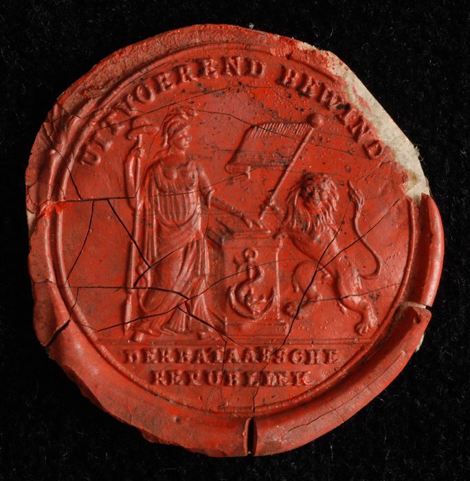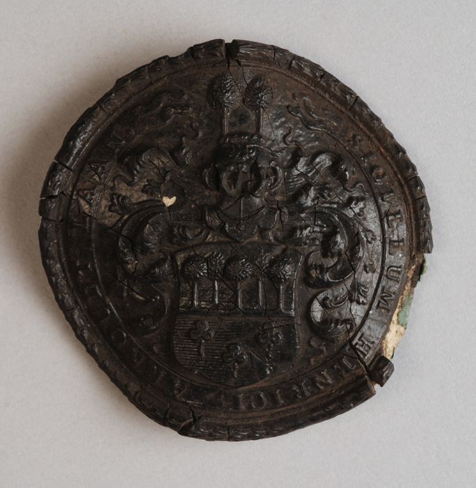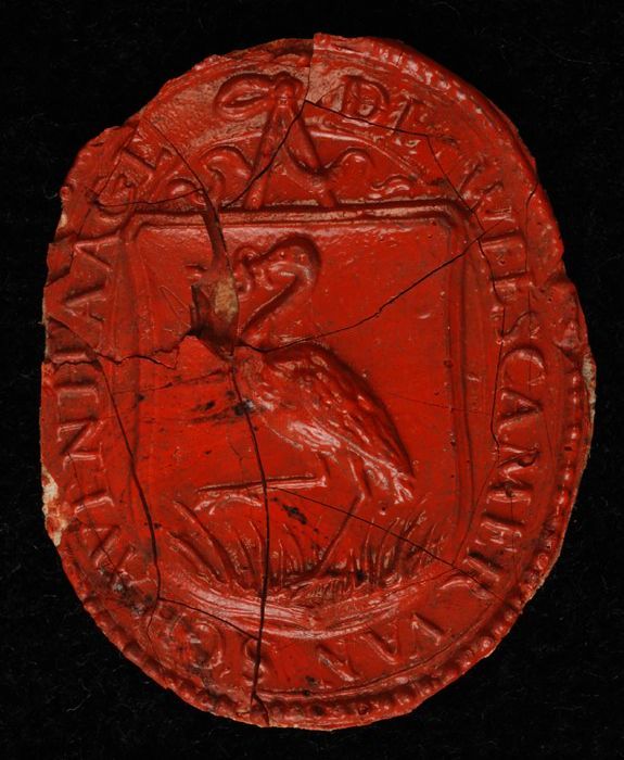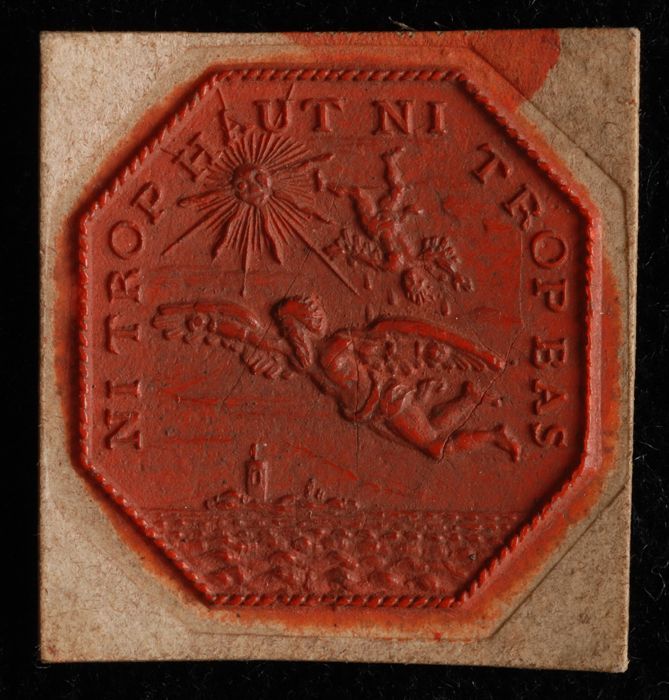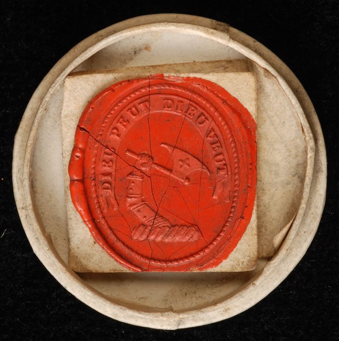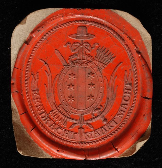 Lakzegel met familiewapen, alliantiewapen van onbeke...