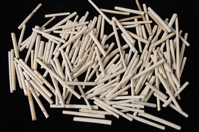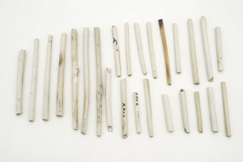 25 stelen van kleipijpen uit het afval van Rotterdam...