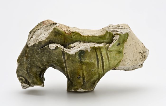 Brok aardewerk in de vorm van een beer, geglazuurd, ...