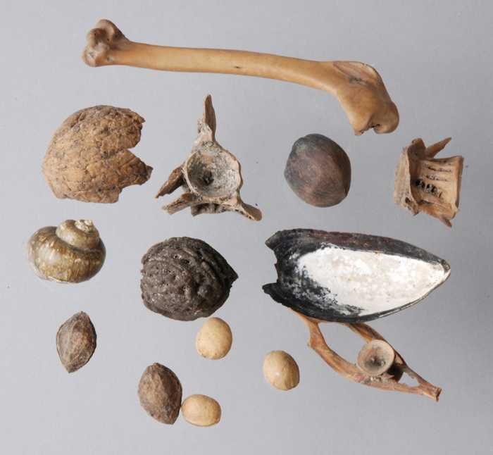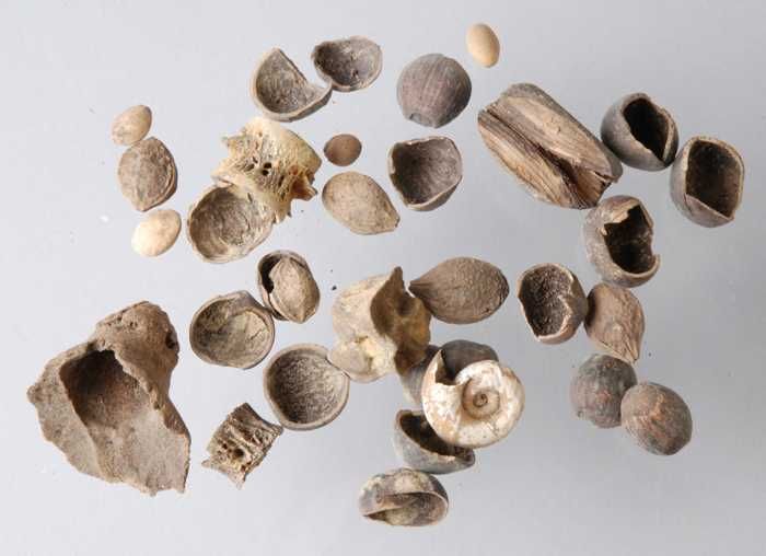 Botten, viswervels, schelpen, noten en pitten, uit a...