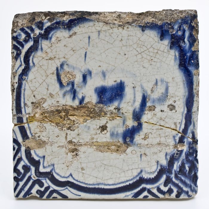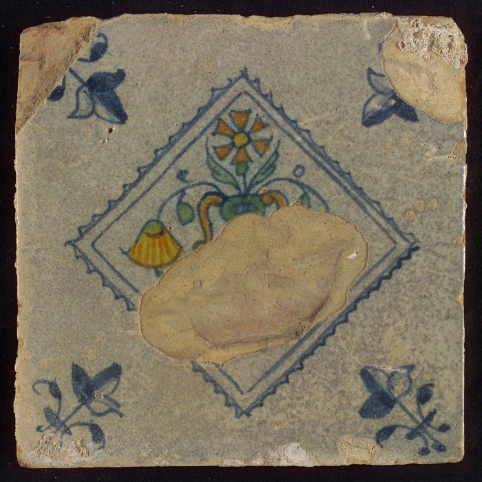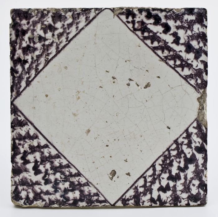 Tegel met wit kwadraat en getamponneerde hoekmotief ...