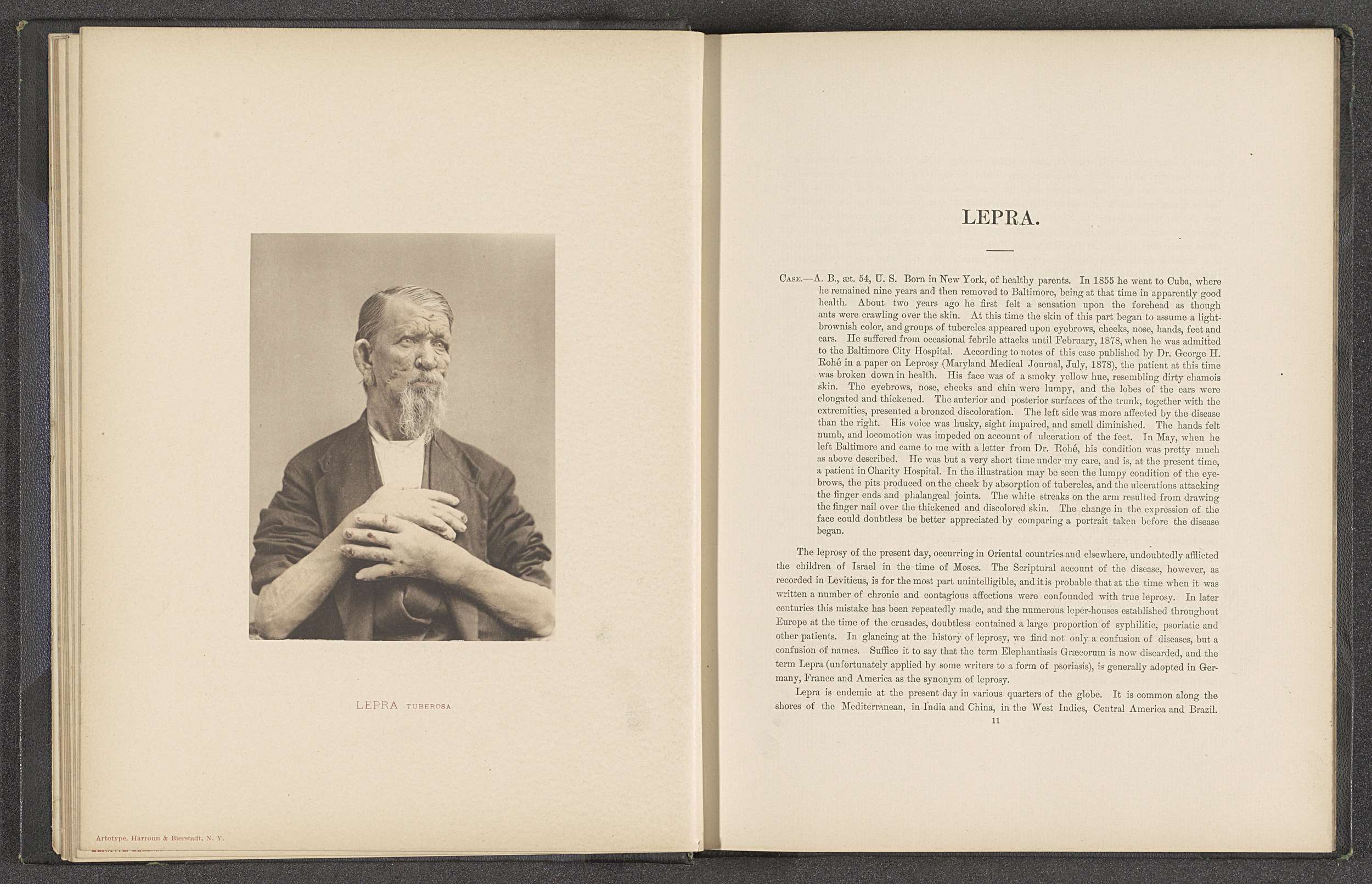 Patiënt lijdend aan de huidziekte 'lepra tuberosa'
