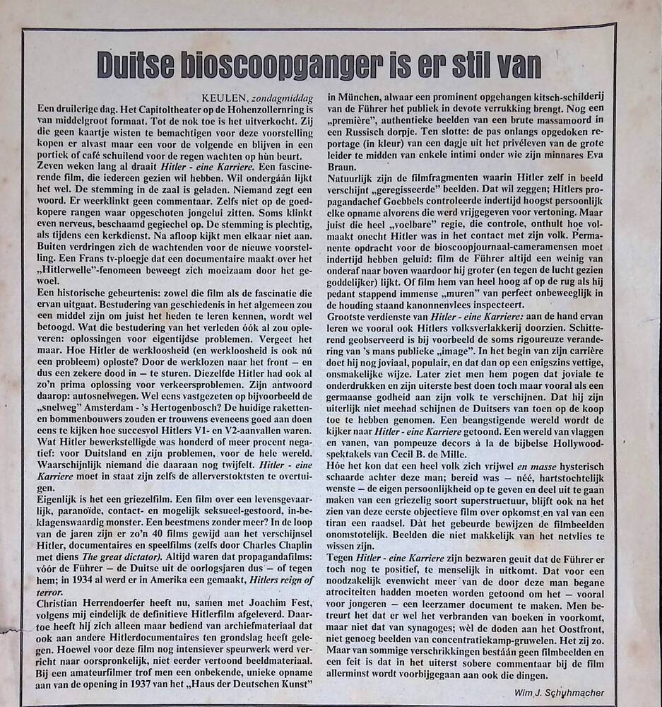 Duitse bioscoopganger is er stil van.