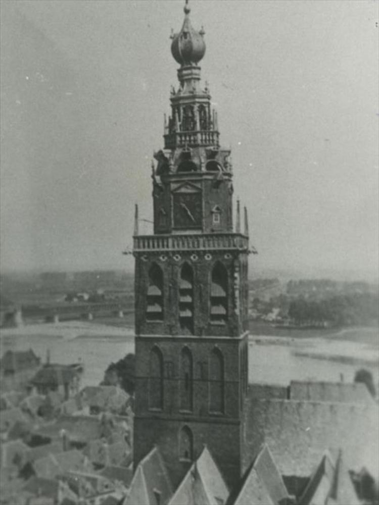 Nijmegen; toren St. Stevenskerk voor bombardement 22...