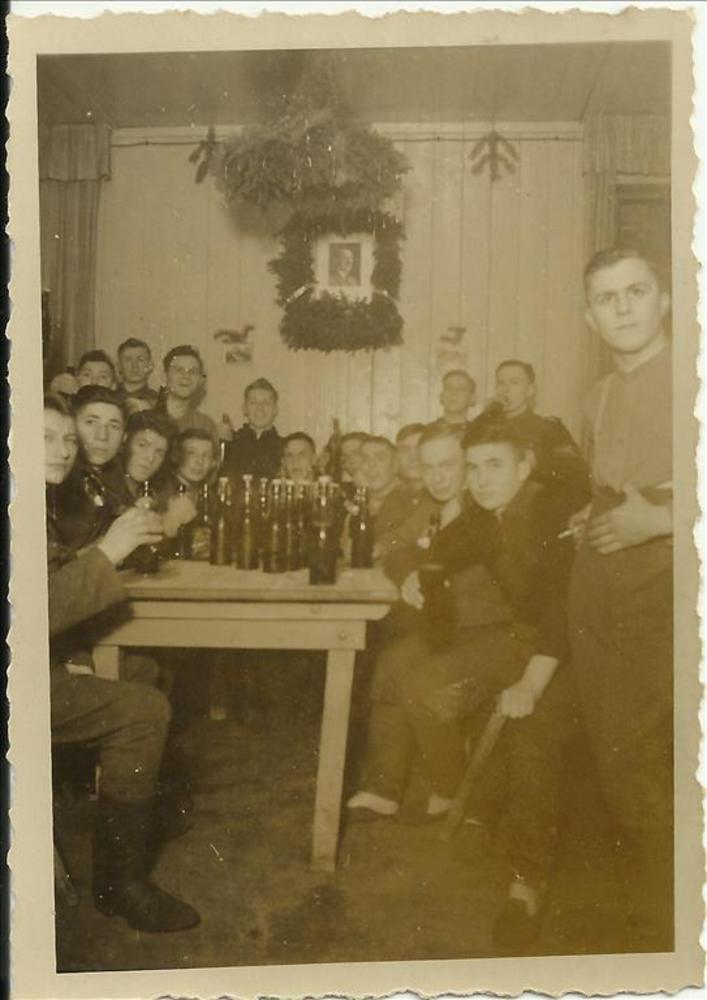 Groep jonge Duitse soldaten viert kerst.