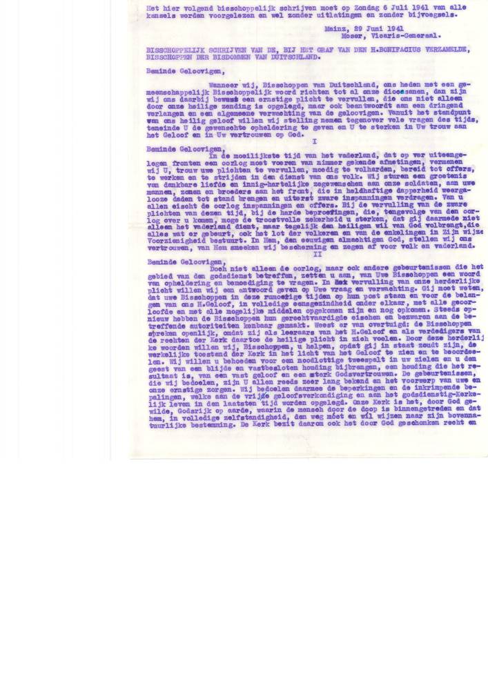 Bisschoppelijk schrijven, Mainz, 29 juni 1941, Moser