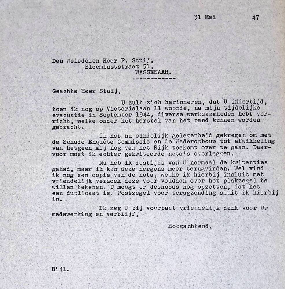 doorslag van brief van B.W.F. v.d. Brand aan P. Stui...