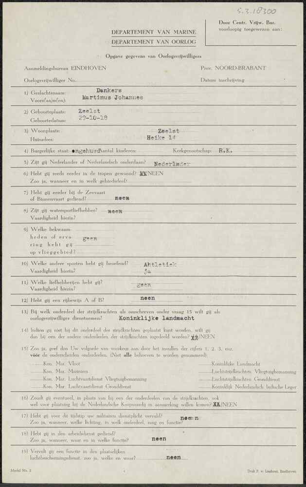 Aanmeldingsformulier oorlogsvrijwilliger Aanmeldings...