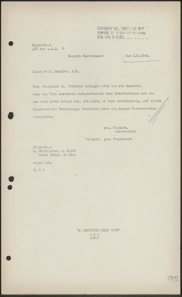 Abschrift Fernschreiben Der Reichskommissar te Den H...