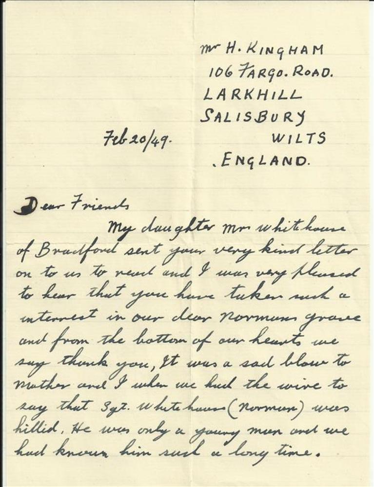 brief aan mevr Sengers van H. Kingman te Salesbury W...